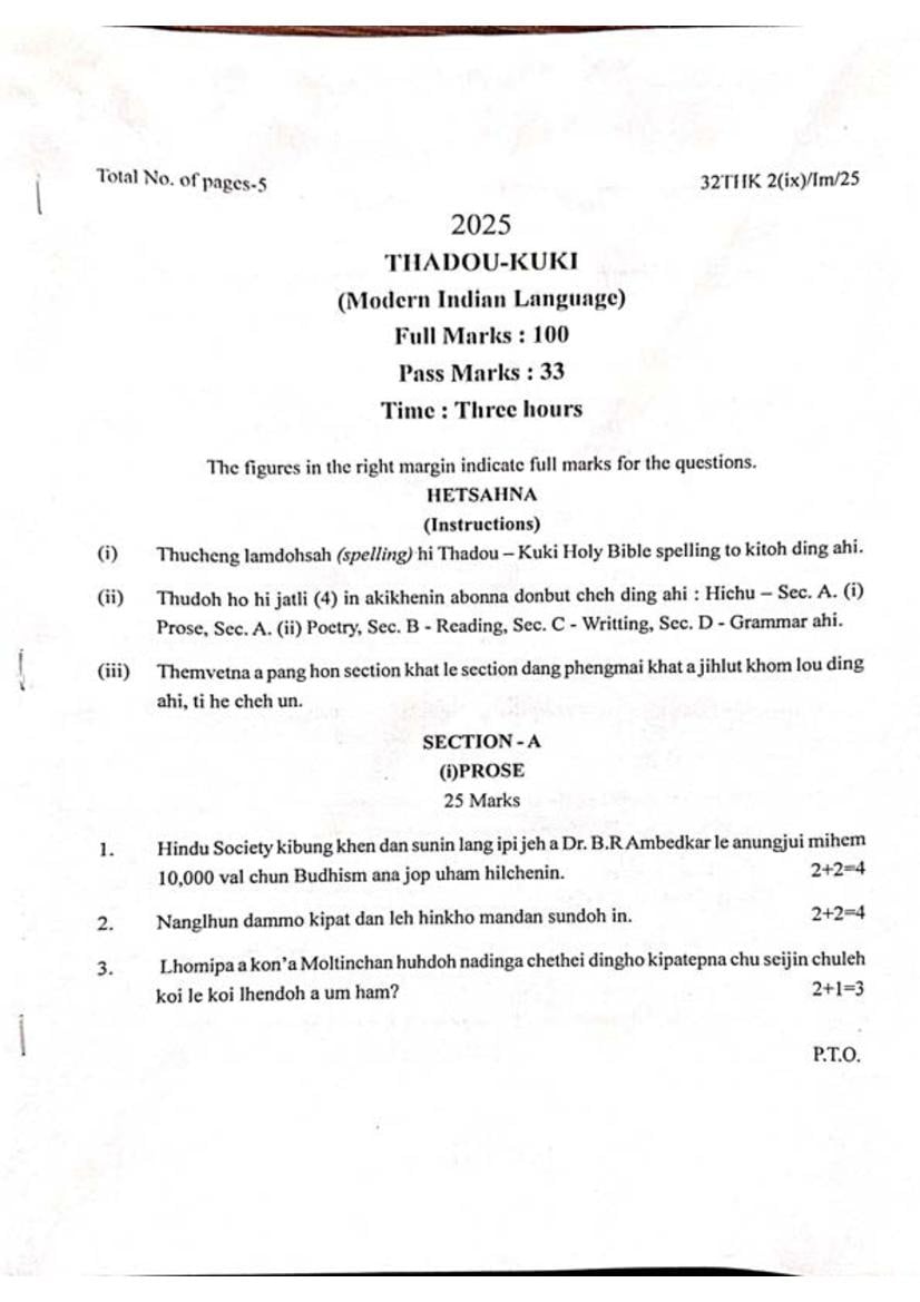 | Class 12 Thadou Kuki Question Paper of 2025 | Click Here to Download PDF |