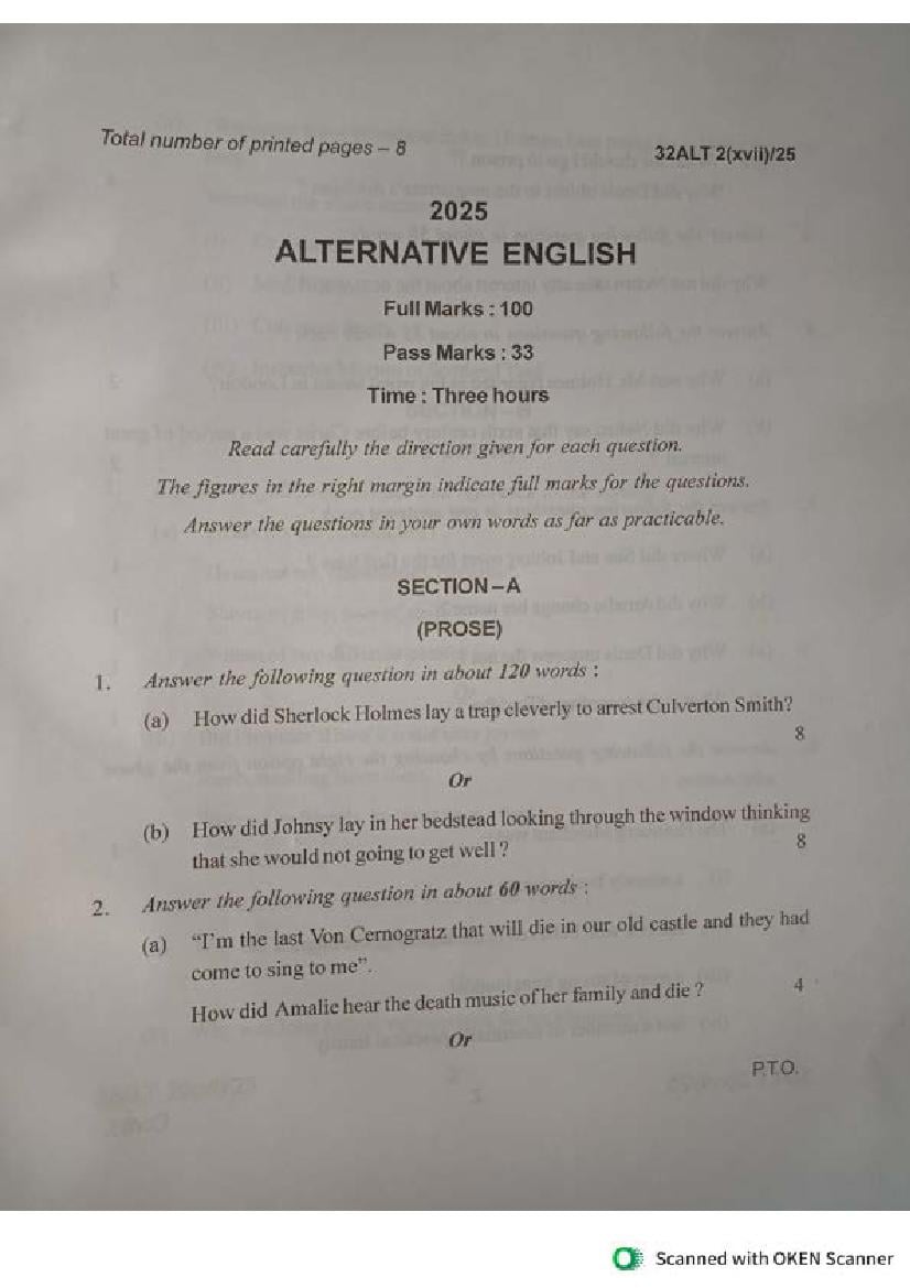 The English Alternative Class 12 Question Paper PDF of the latest question paper is as follows; it contains a comprehensive set of questions designed to evaluate the knowledge and understanding of the subject matter.