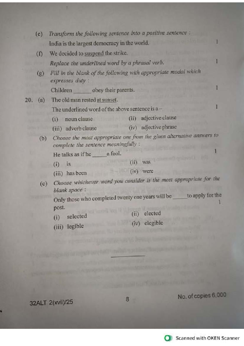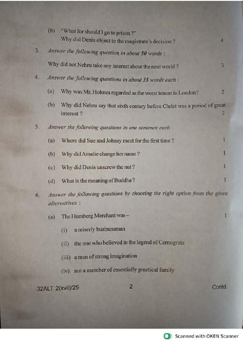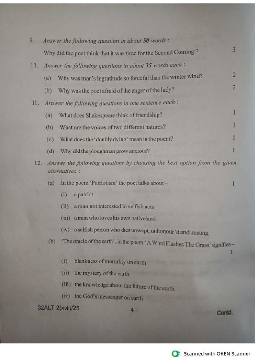 Manipur Board Class 12 Question Paper 2025 for Alternative English View Download