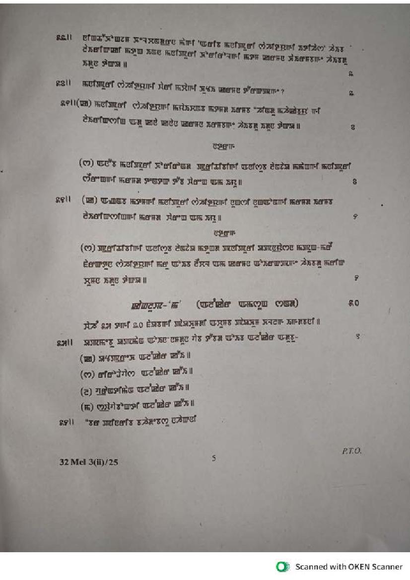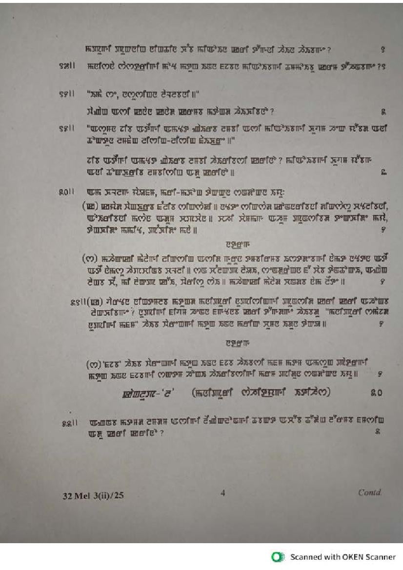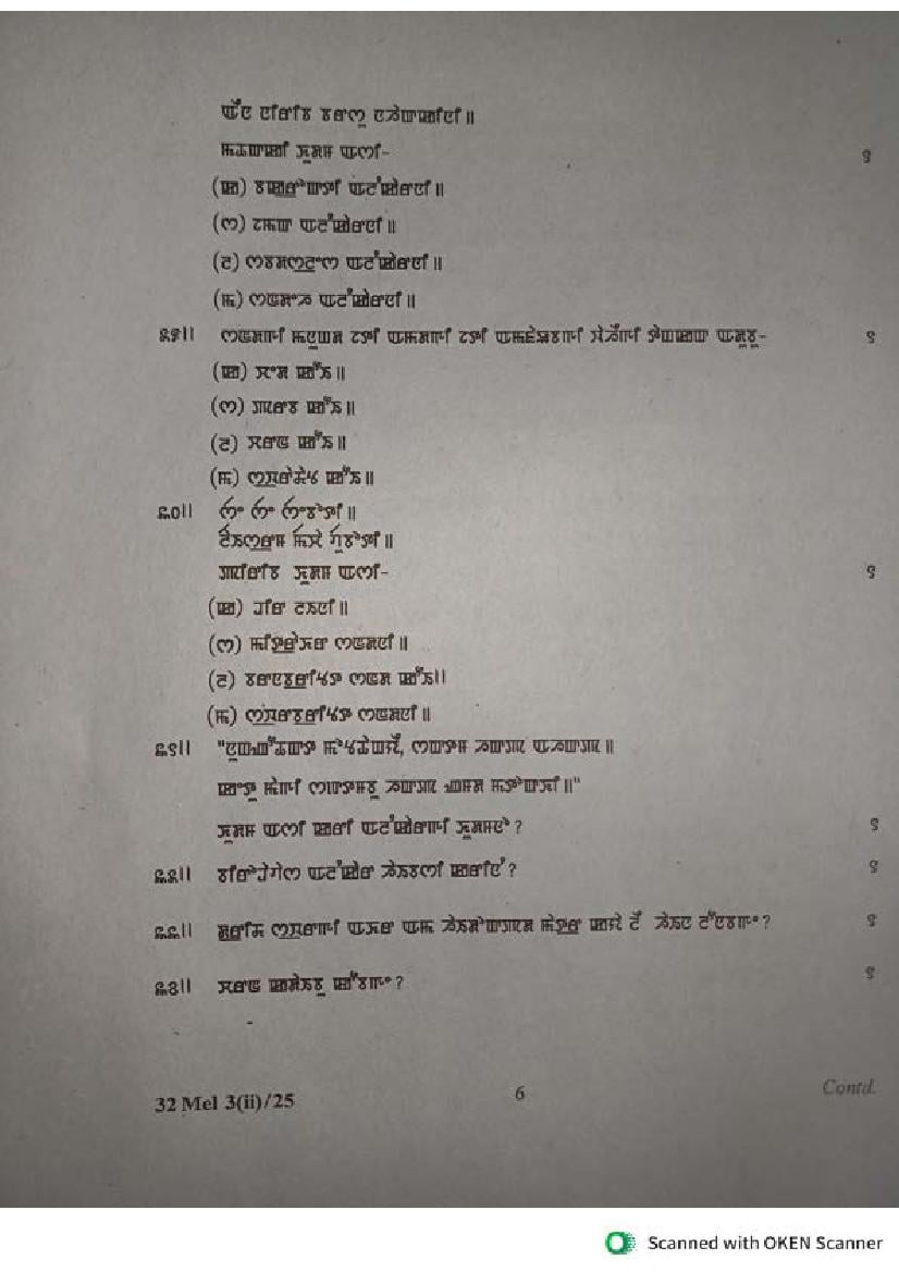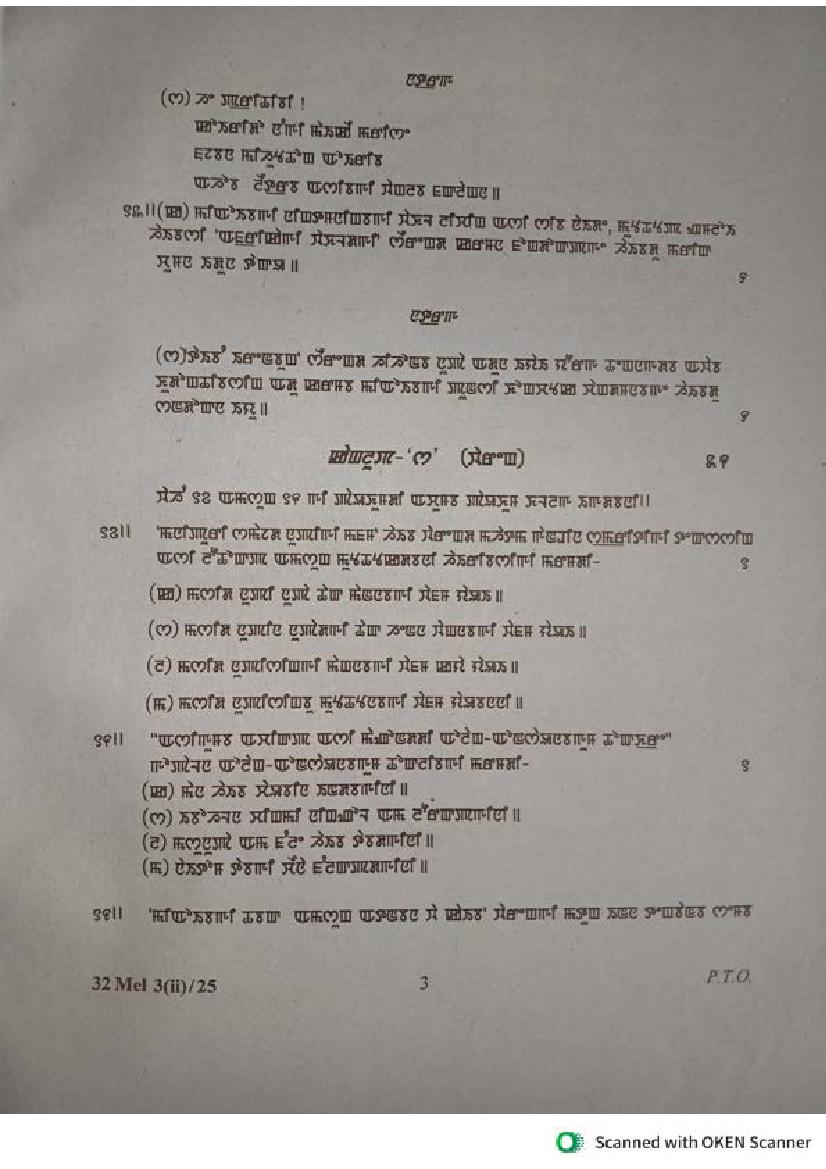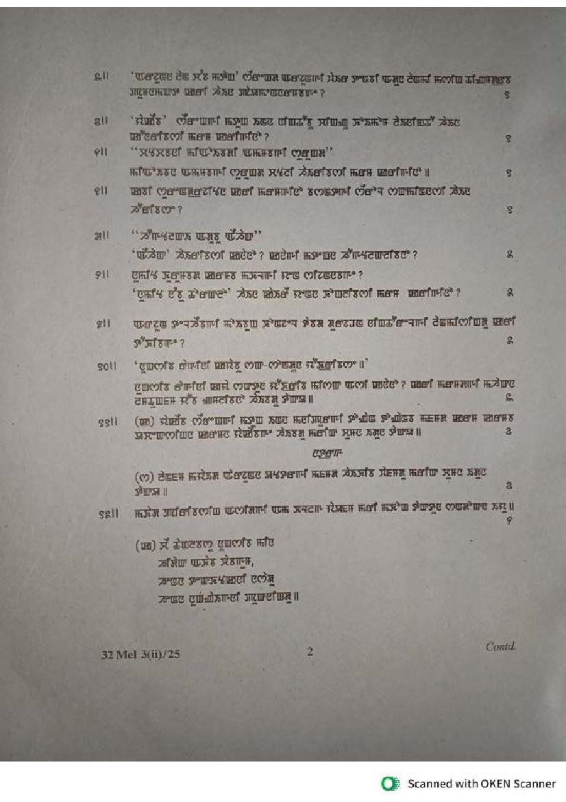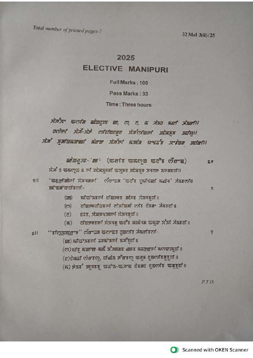 Manipur Board Class 12 Question Paper 2025 for Elective Manipuri View Download