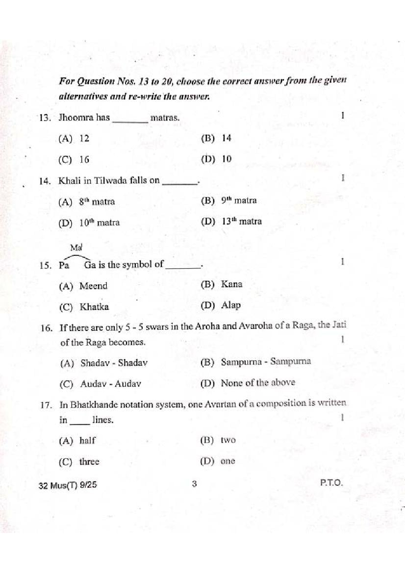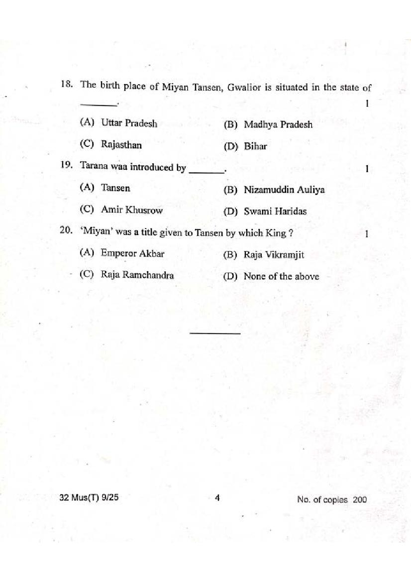 The Music Class 12 Question Paper PDF of the latest question paper is as follows; it contains a comprehensive set of questions designed to evaluate the knowledge and understanding of the subject matter.