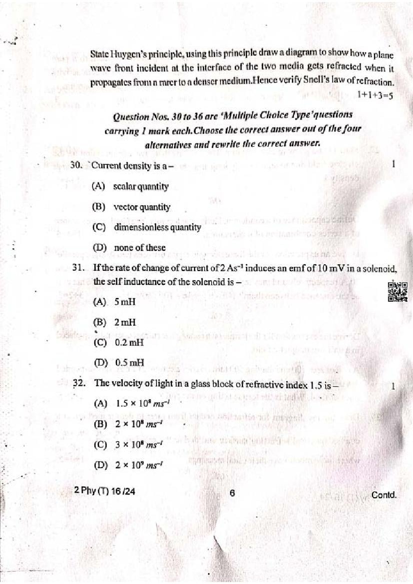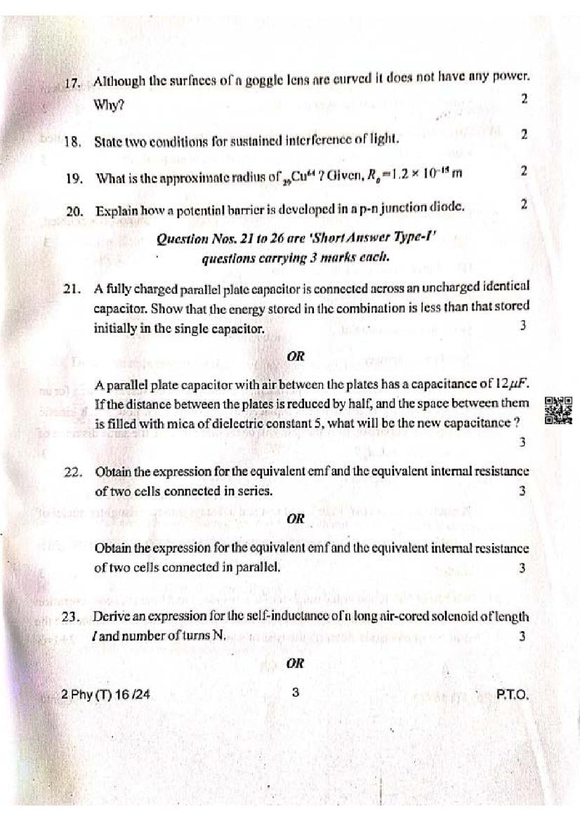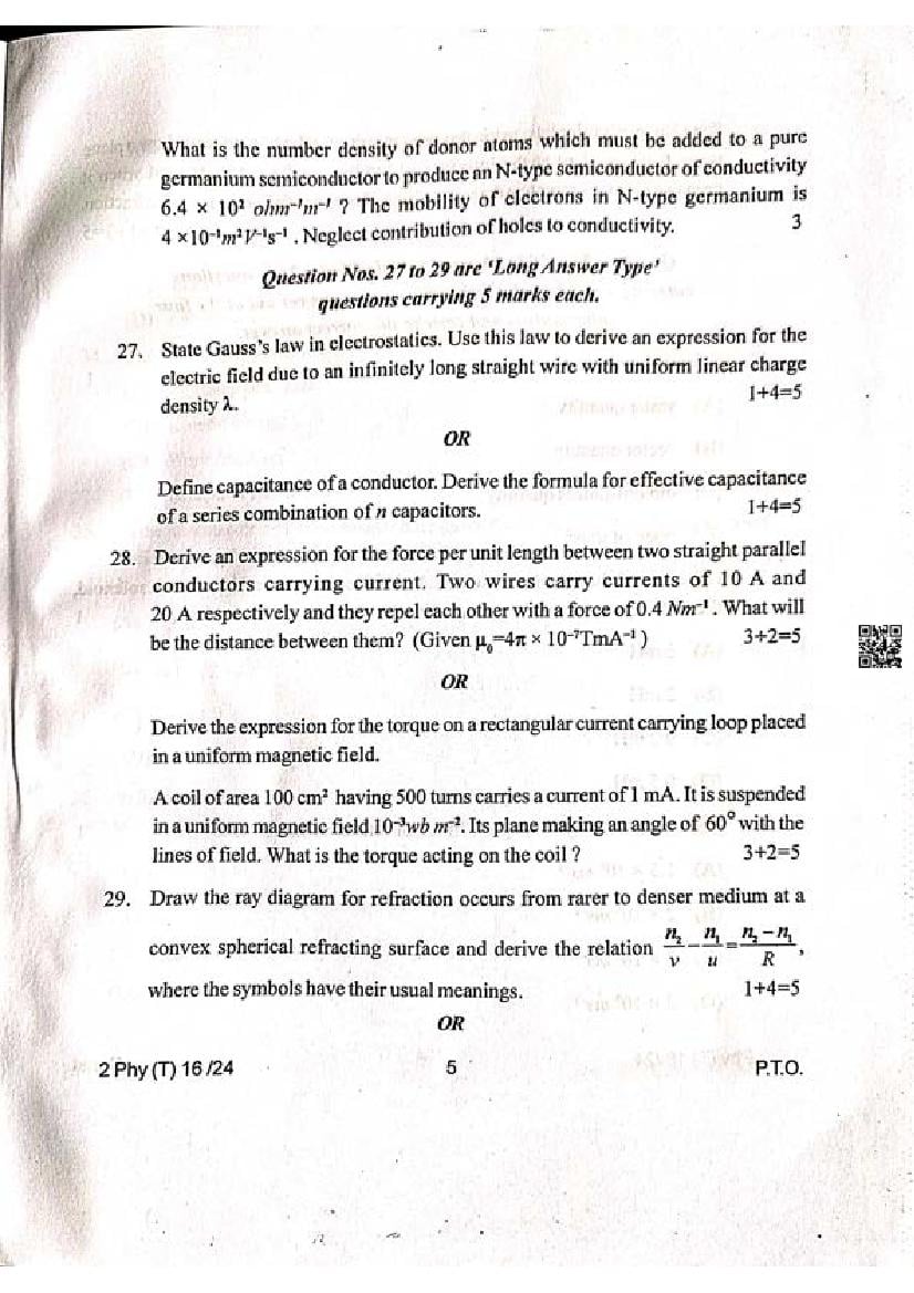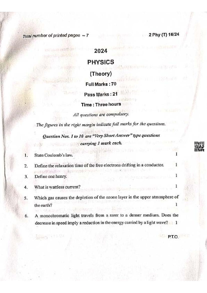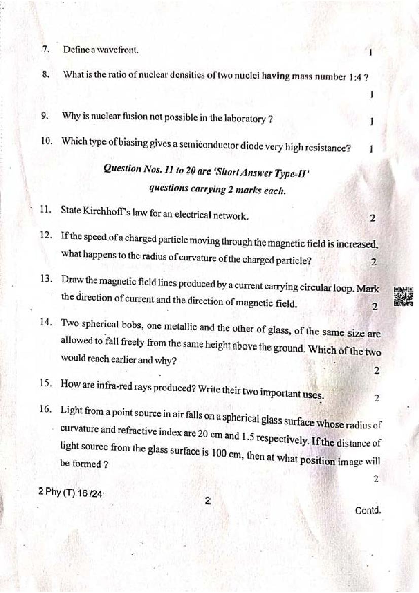 Manipur Board Class 12 Question Paper 2024 for Physics View Download