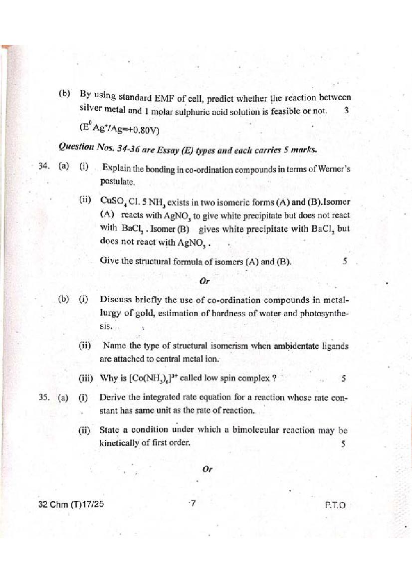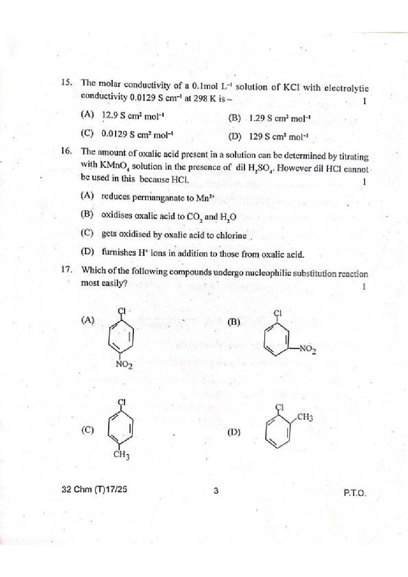 Manipur Board Class 12 Question Paper 2025 for Chemistry View Download