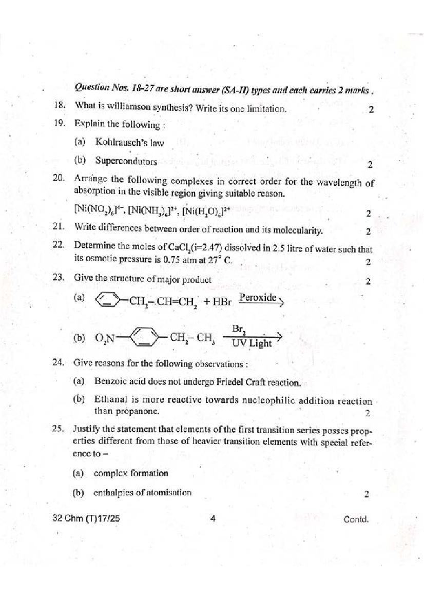 The Chemistry Class 12 Question Paper PDF of the latest question paper is as follows; it contains a comprehensive set of questions designed to evaluate the knowledge and understanding of the subject matter.