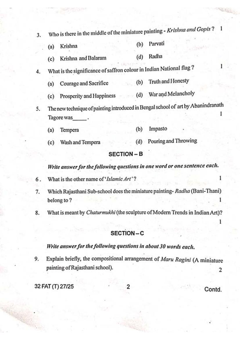 The Fine Arts Class 12 Question Paper PDF of the latest question paper is as follows; it contains a comprehensive set of questions designed to evaluate the knowledge and understanding of the subject matter.