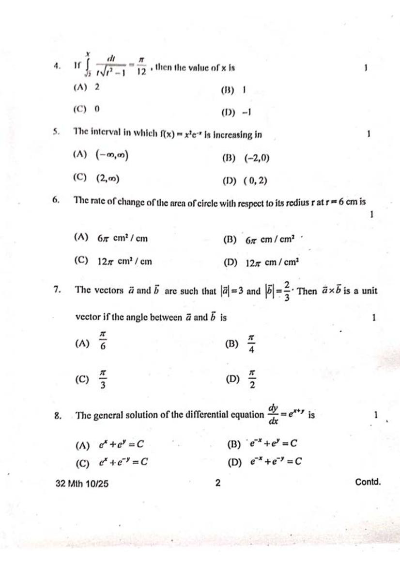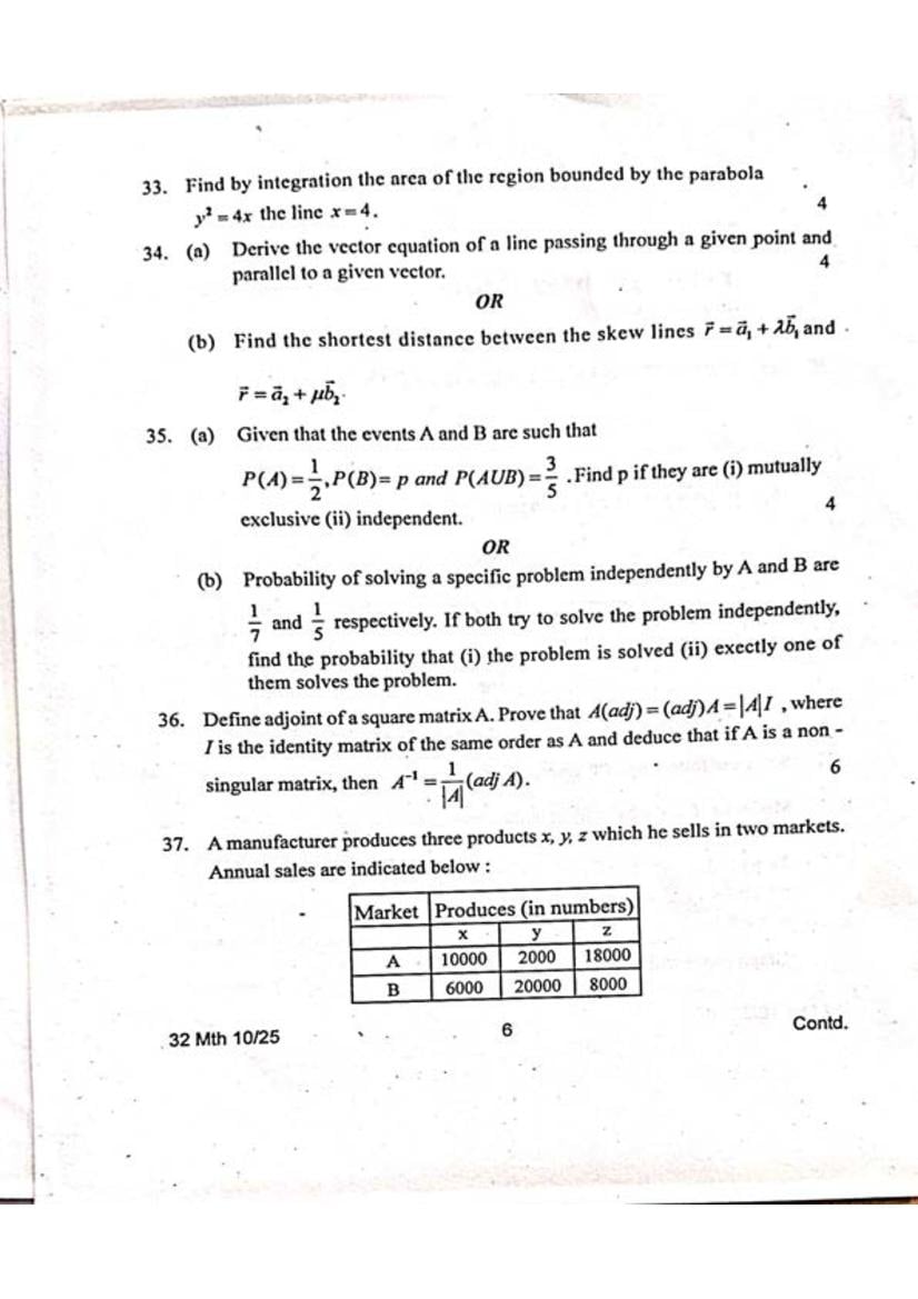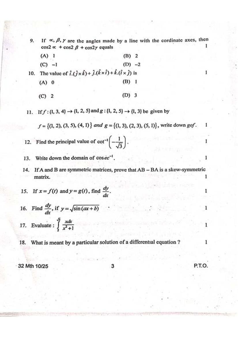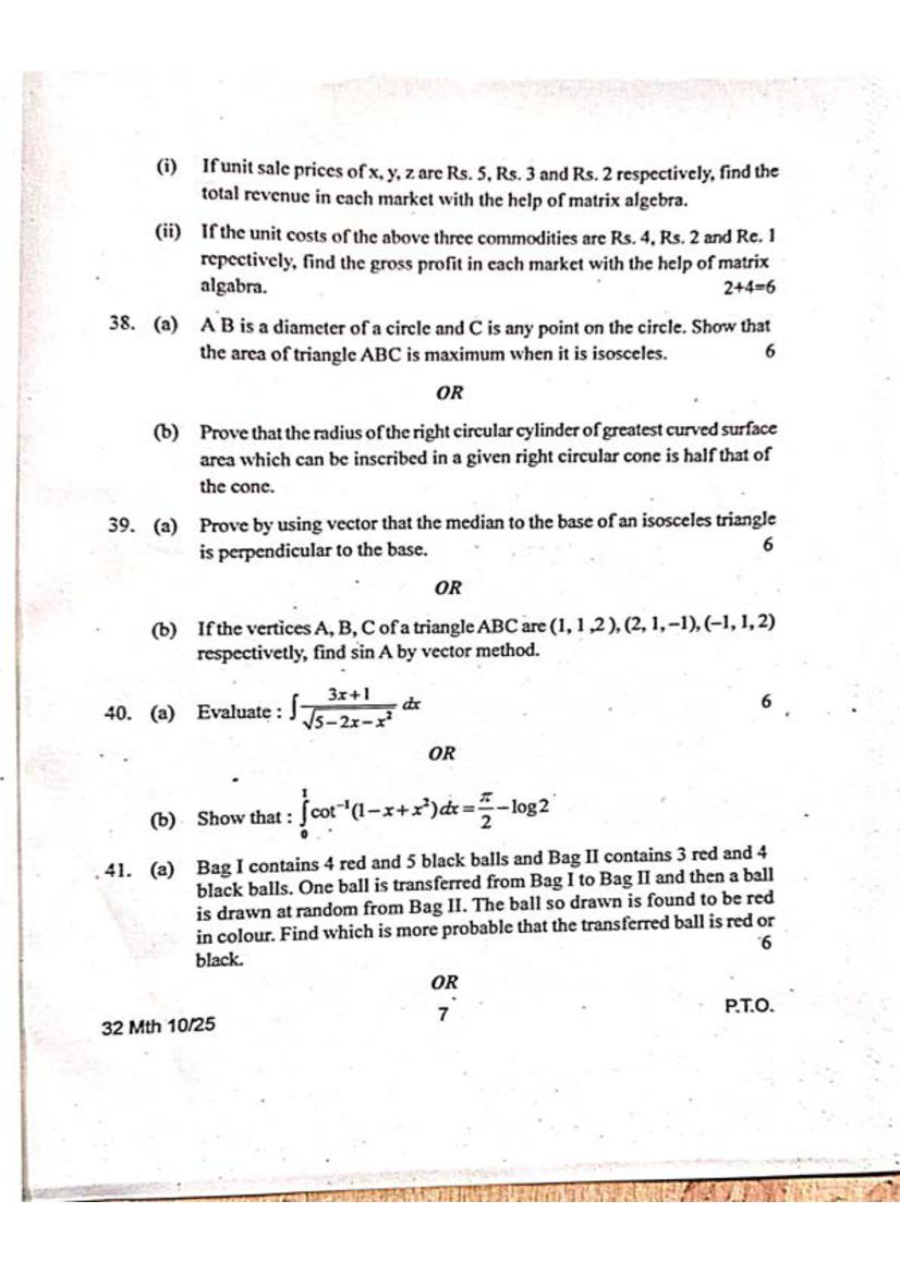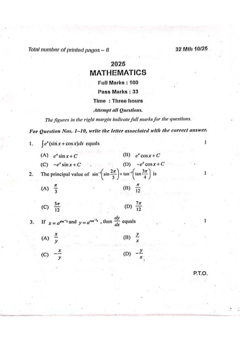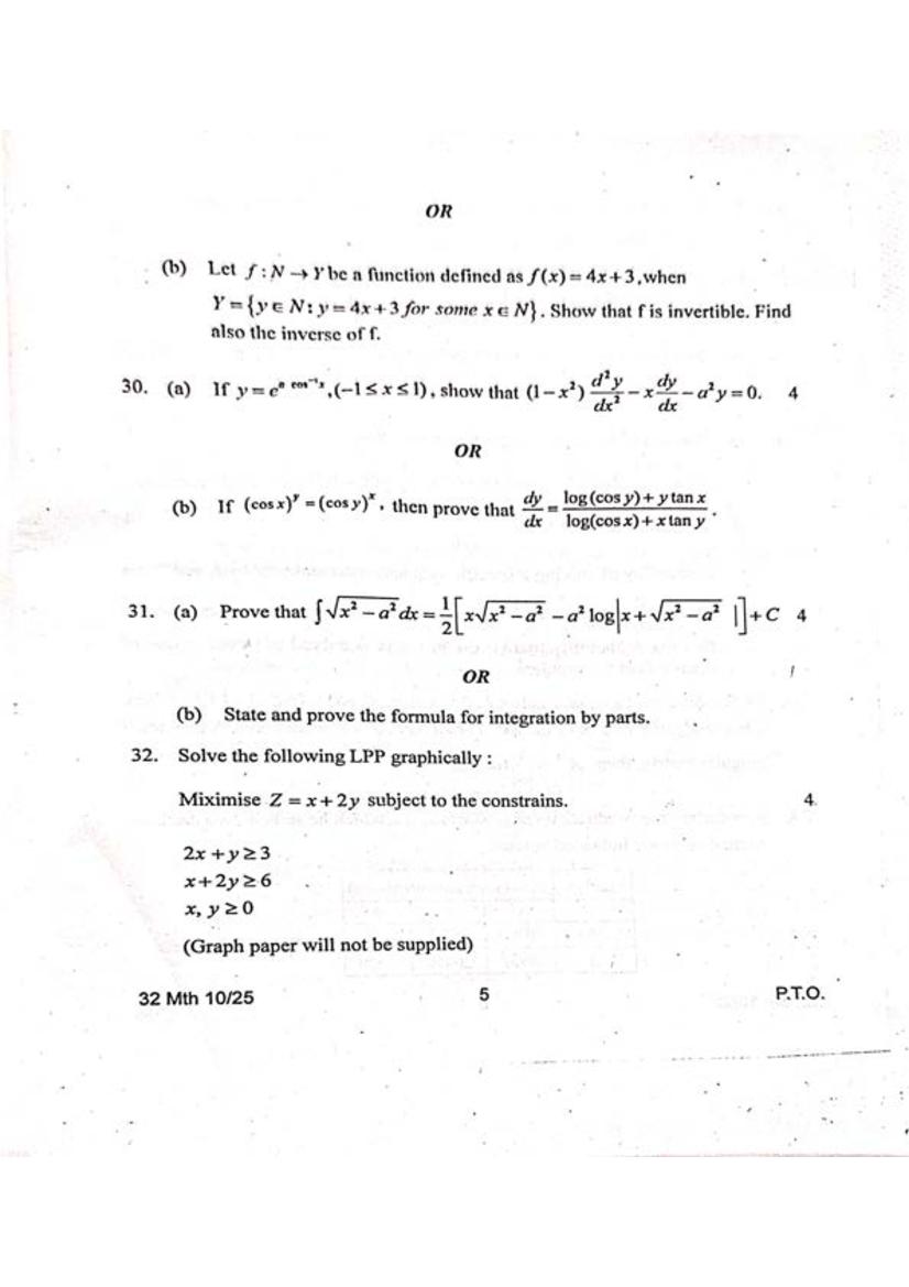 Manipur Board Class 12 Question Paper 2025 for Mathematics View Download
