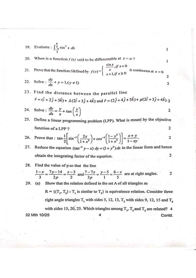 | Class 12 Maths Question Paper of 2025 | Click Here to Download PDF |