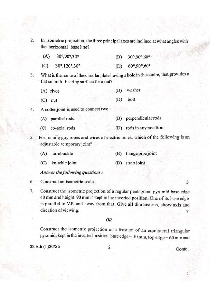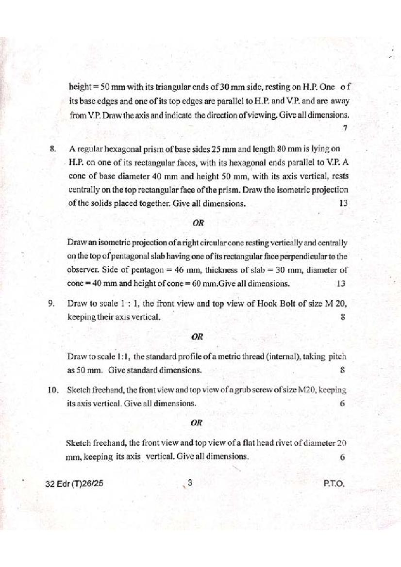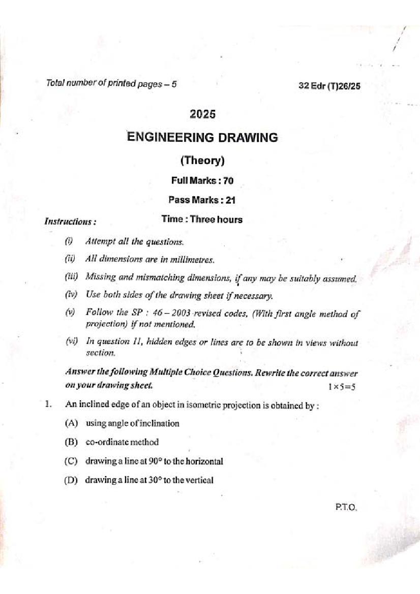 Manipur Board Class 12 Question Paper 2025 for Engineering Drawing View Download