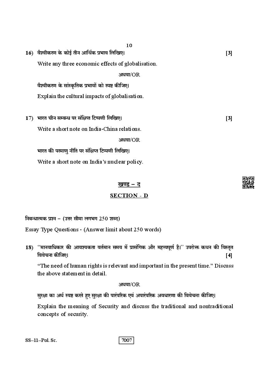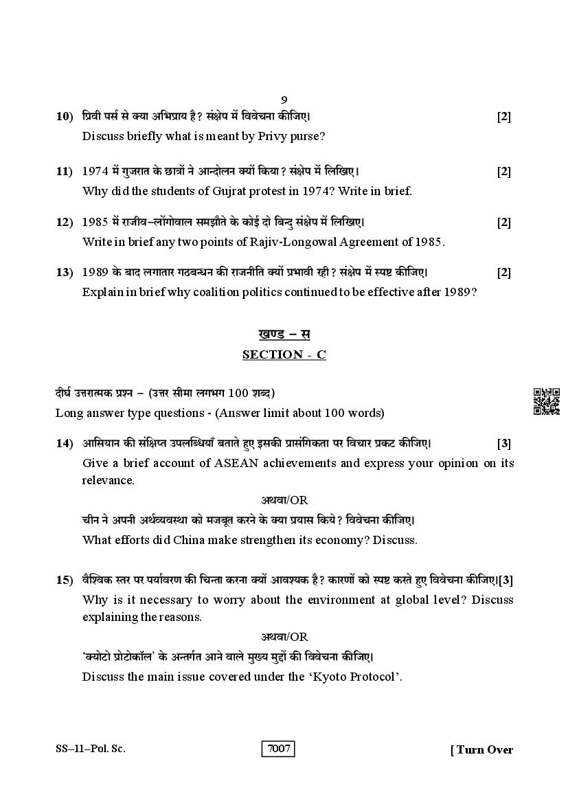 For the sake of the candidates download links of the Rajasthan Board 12 Political Science Previous Year Question Paper are given below.