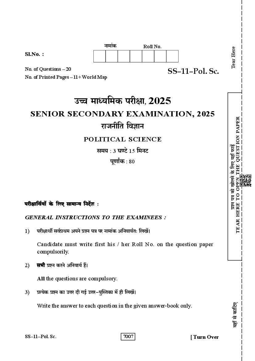 RBSE 12th Political Science Question Paper 2025 PDF is given below.