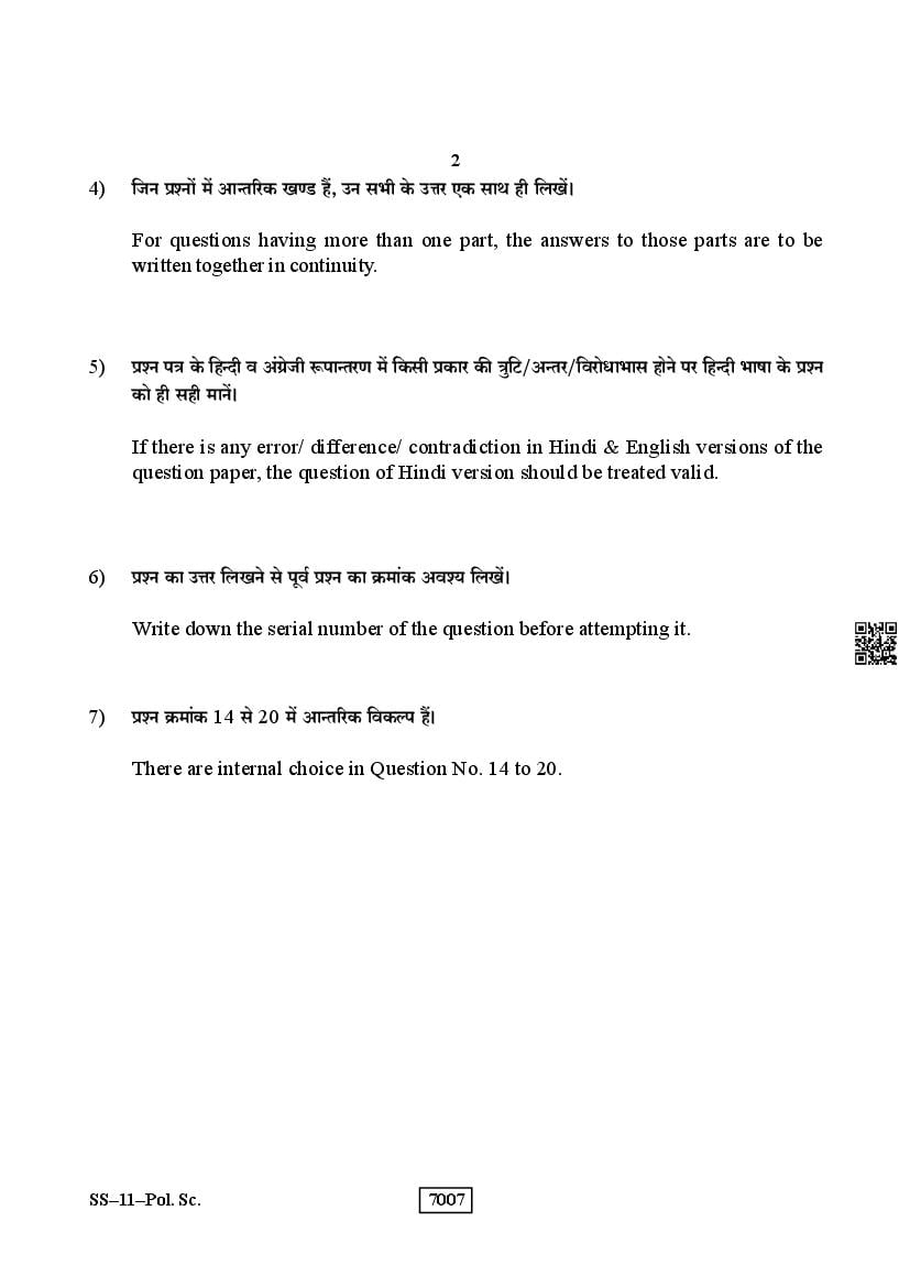 The Rajasthan Board previous year question paper for class 12 Political Science is as follows.