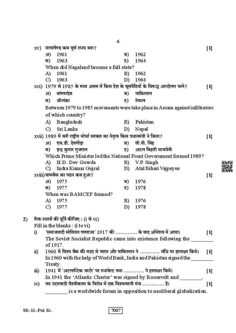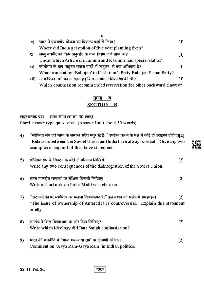 More RBSE Class 12 Political Science Question Papers Download Link – Click Here to Download PDFs