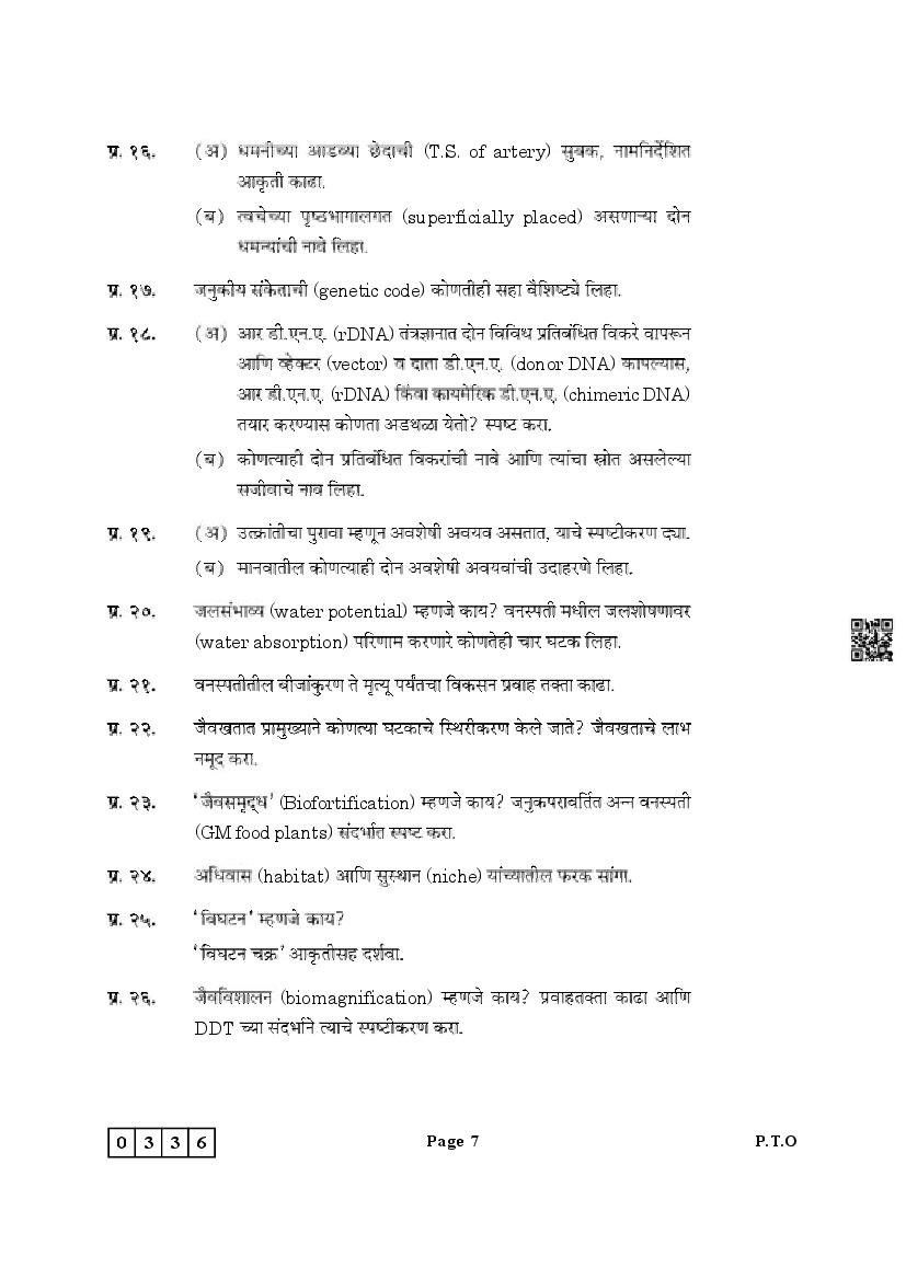 Maharashtra HSC Biology Question Paper 2025 PDF