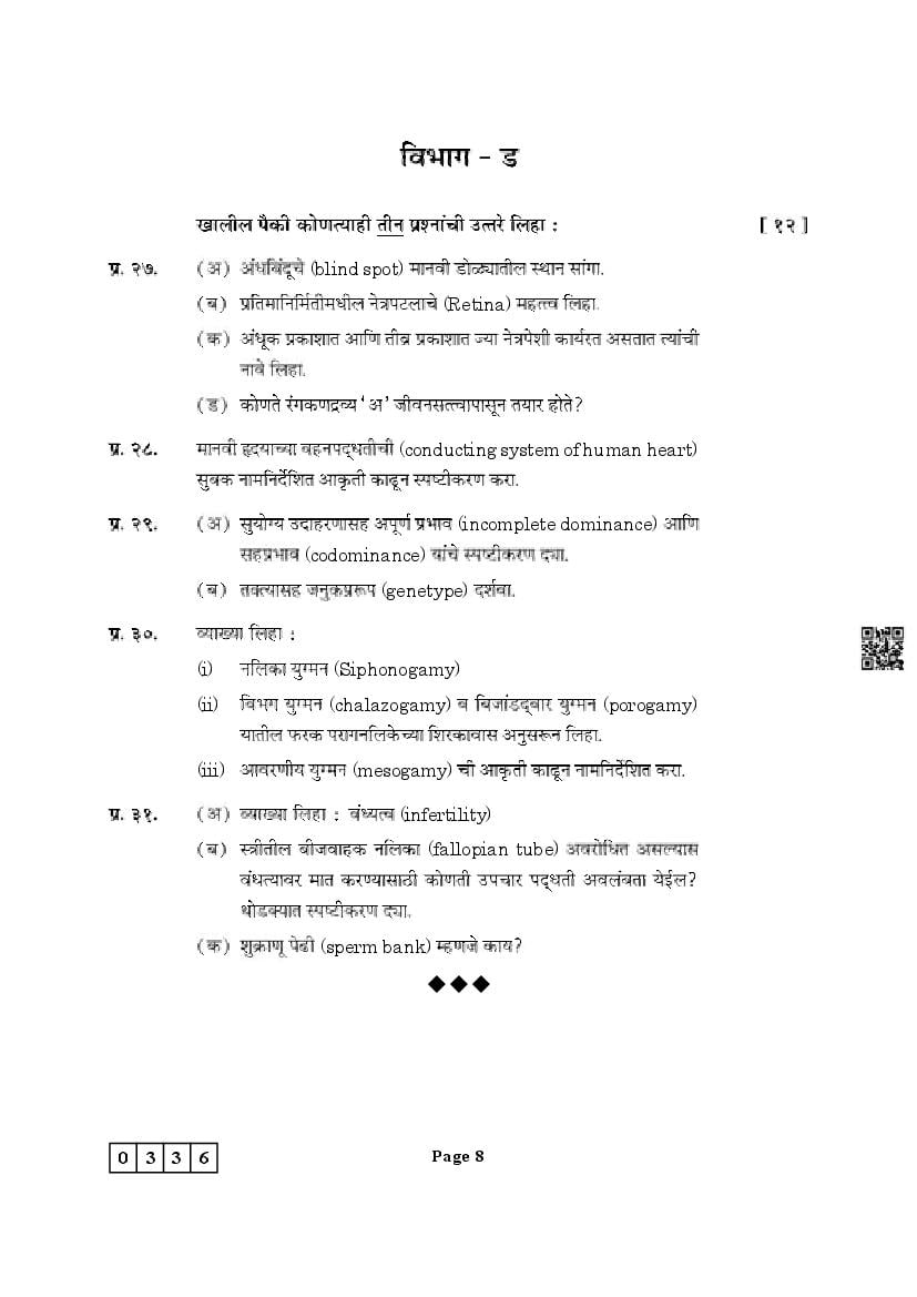 | Educational Resource Here | Maharashtra Board Previous Year Question Paper of Class 12 Biology |