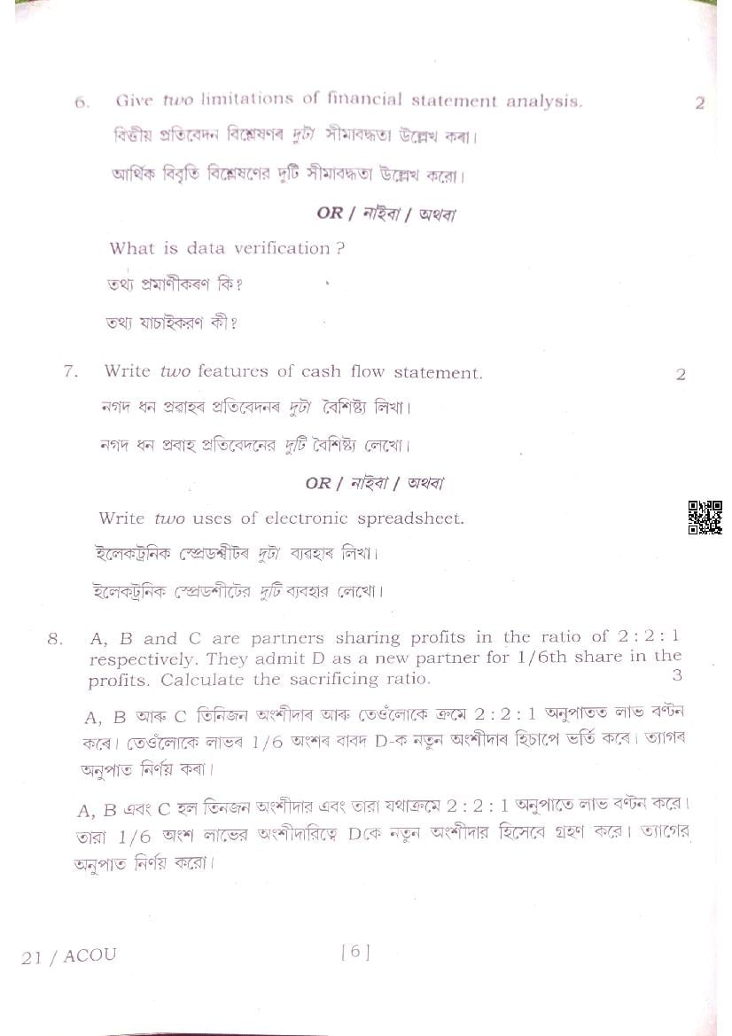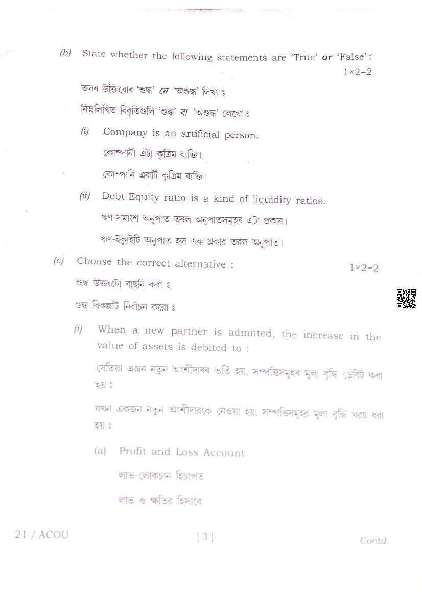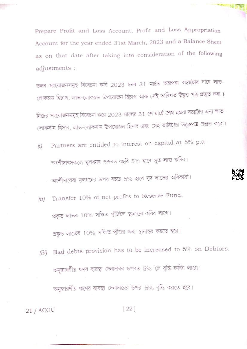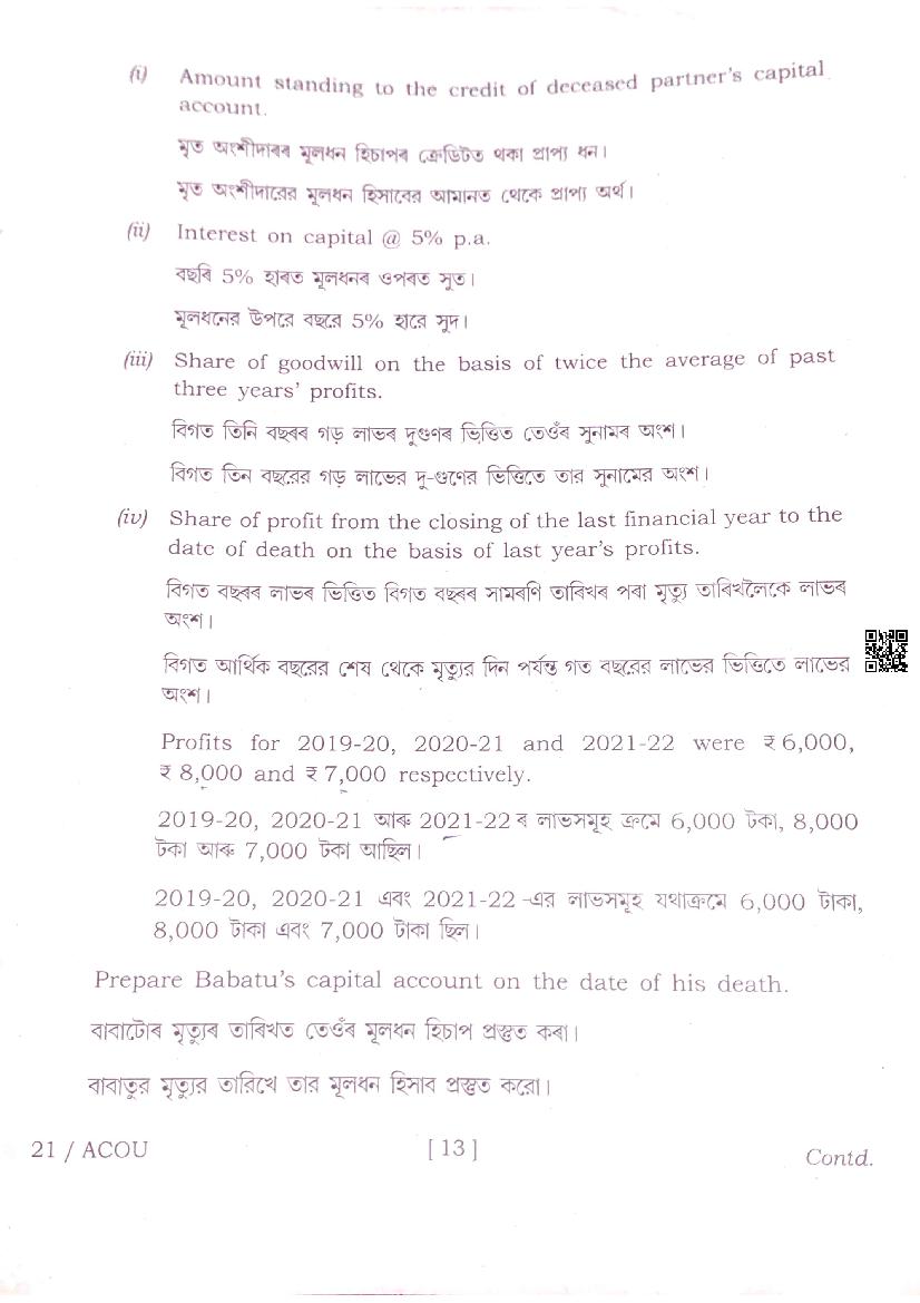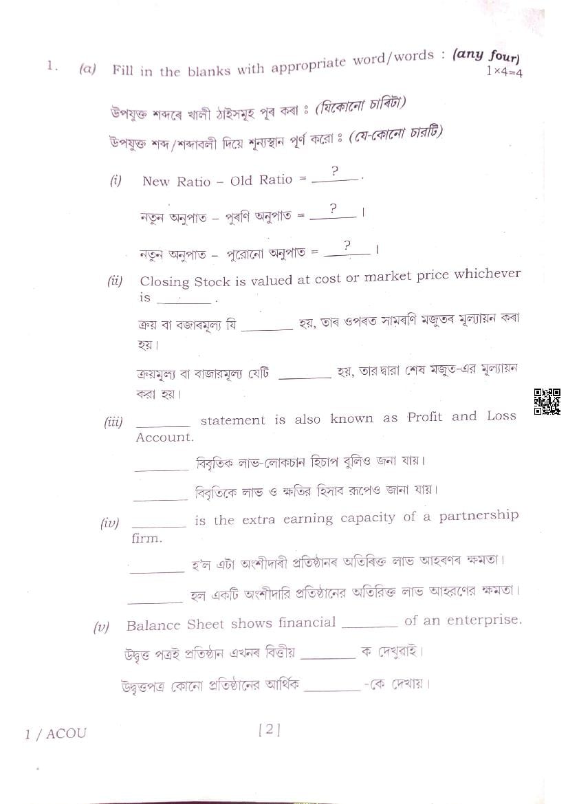 The Assam Board Previous Year Question Paper for HS 2nd Year (Class 12) Accountancy is as follows.