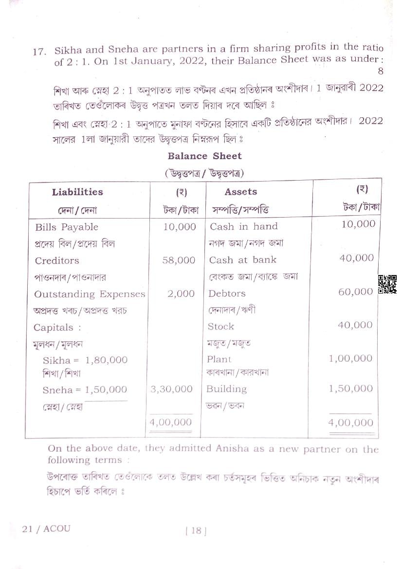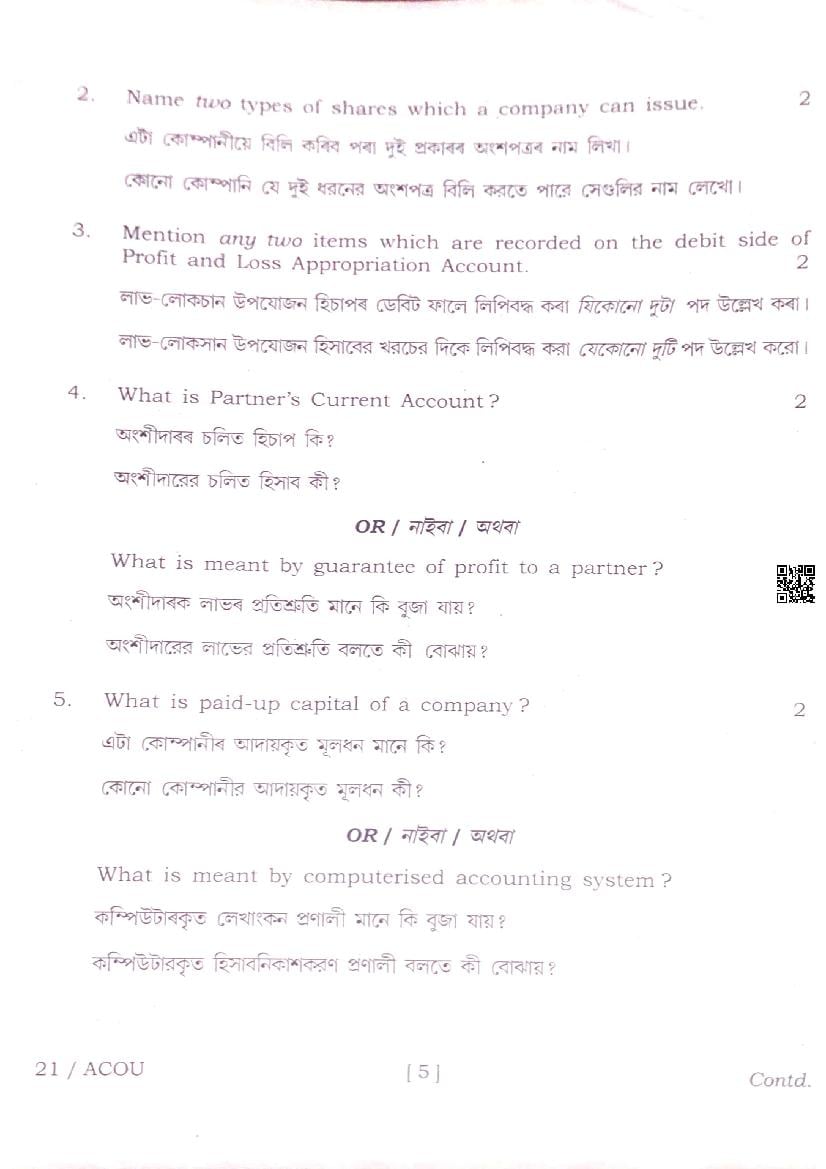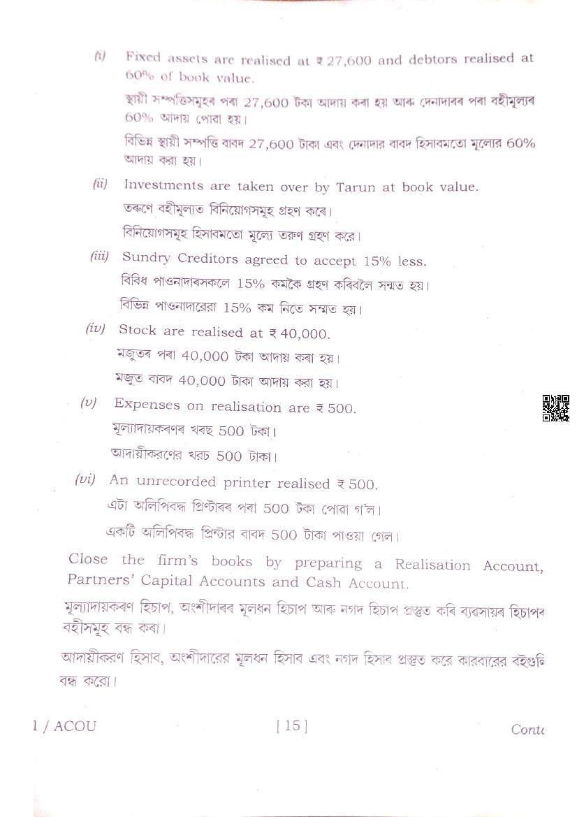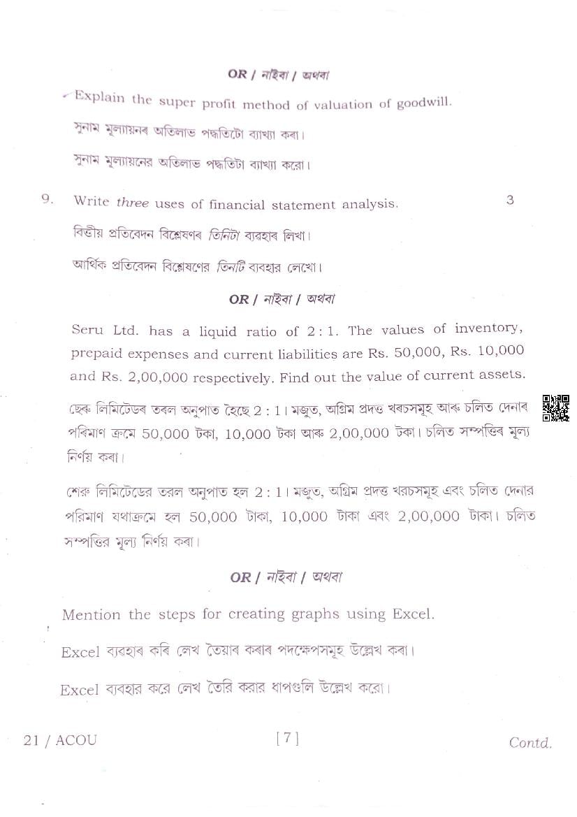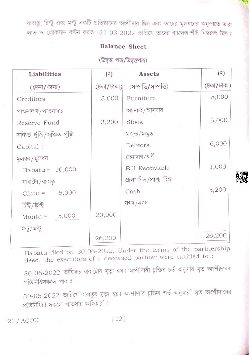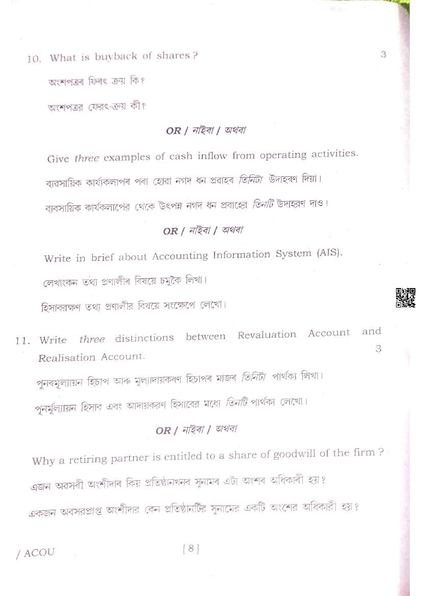 The Assam Board Previous Year Question Paper for HS 2nd Year (Class 12) Accountancy is as follows.