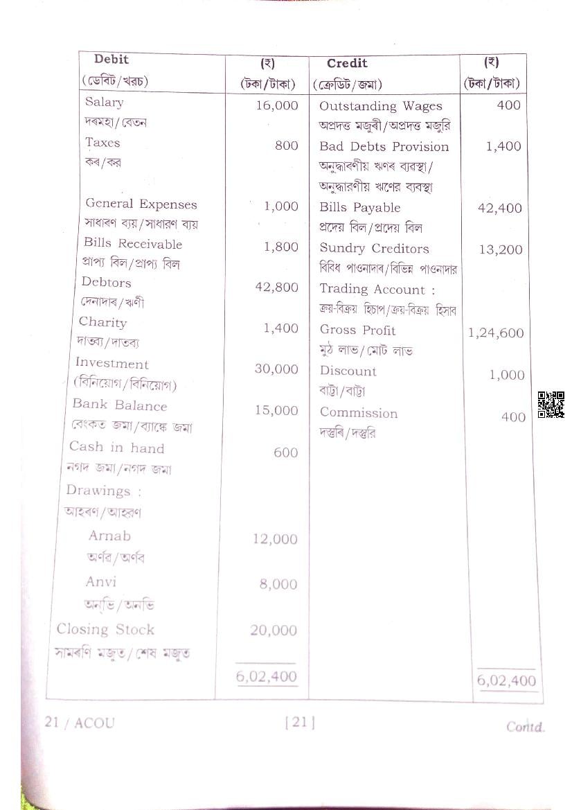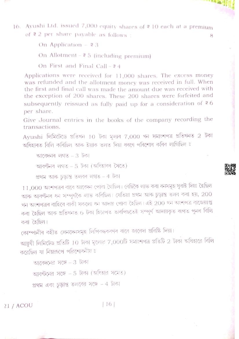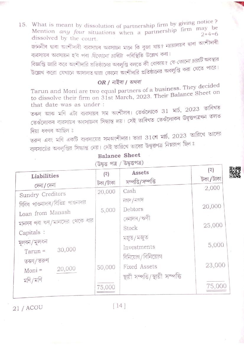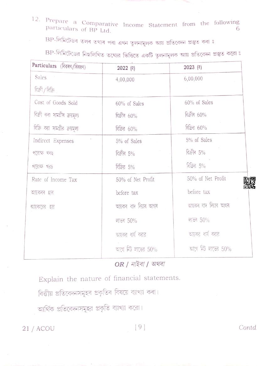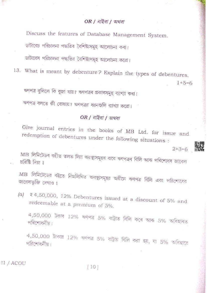 The Assam Board Previous Year Question Paper for HS 2nd Year (Class 12) Accountancy is as follows.