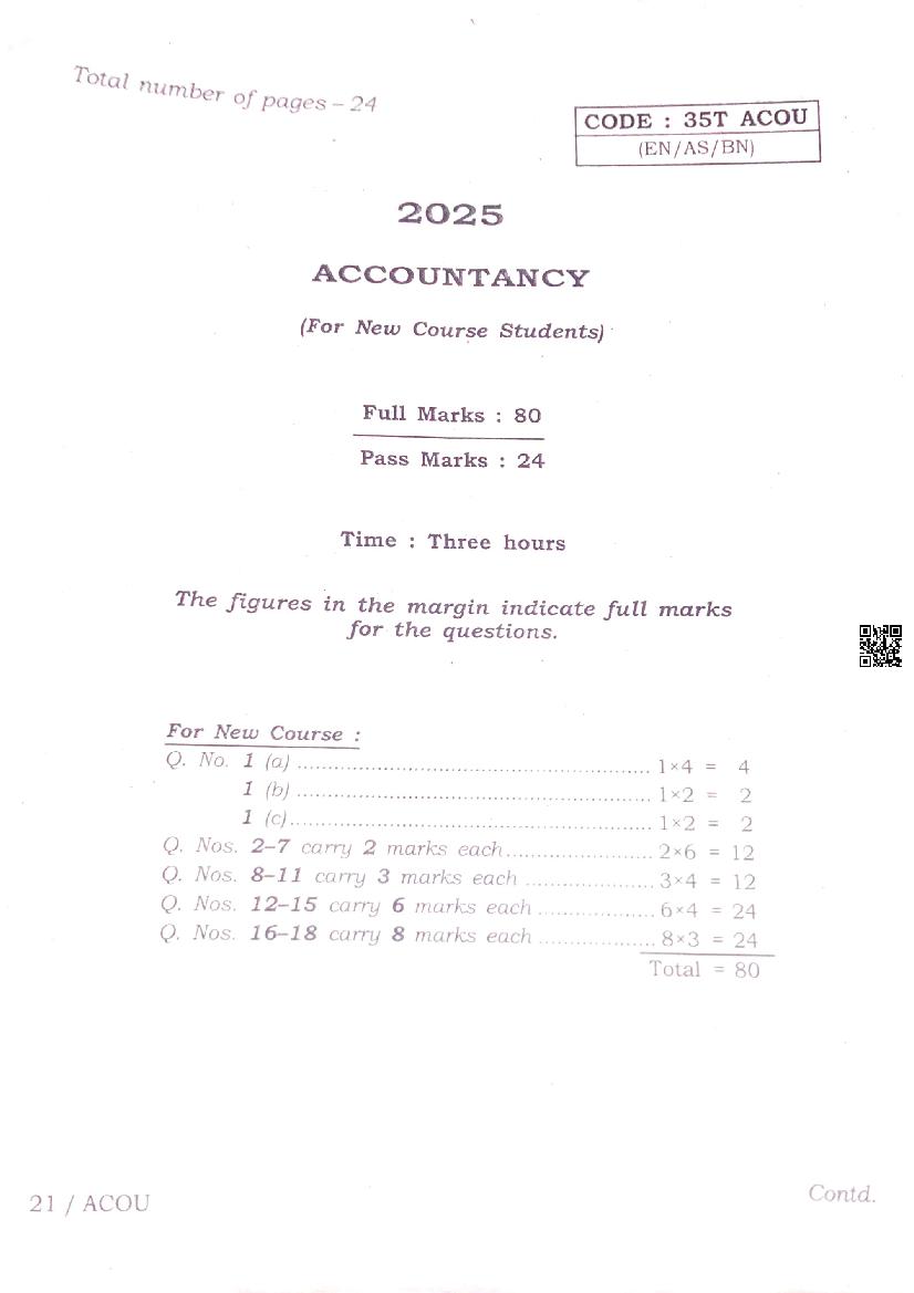 AHSEC Class 12 Accountancy Question Paper 2025 has been published here. You can download Assam Board HS 2nd Year Accountancy Question Paper PDF from here on aglasem to prepare for your exams. This Assam HS 2nd Year Previous Year Question Paper is for Accountancy subject and contains actual questions asked in past year exams. So by going through the Accountancy question paper, you can get a good idea of what types of questions to expect from HS 2nd Year Accountancy syllabus, difficulty level, and questions distribution. Thus the AHSEC Accountancy Question Paper helps in improving your exam preparation.