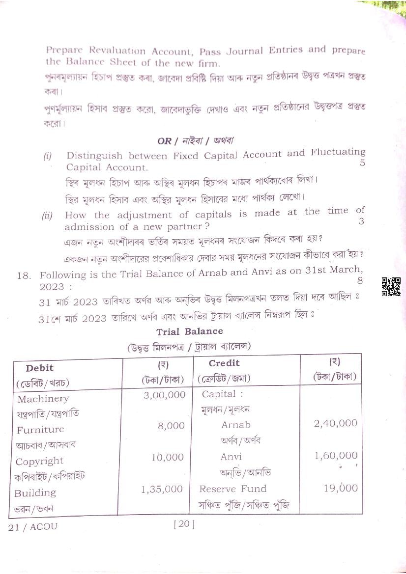 AHSEC Class 12 Accountancy Question Paper 2023 PDF Download Link – Click Here to Download Question Paper PDF