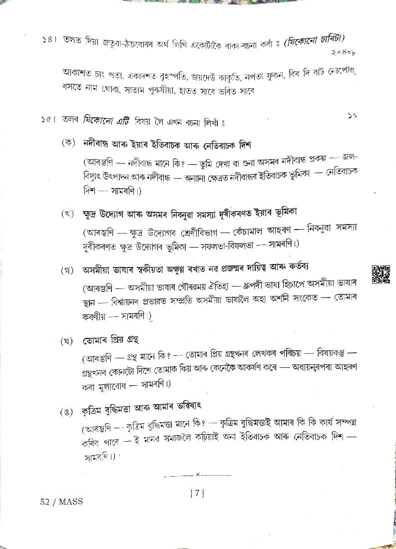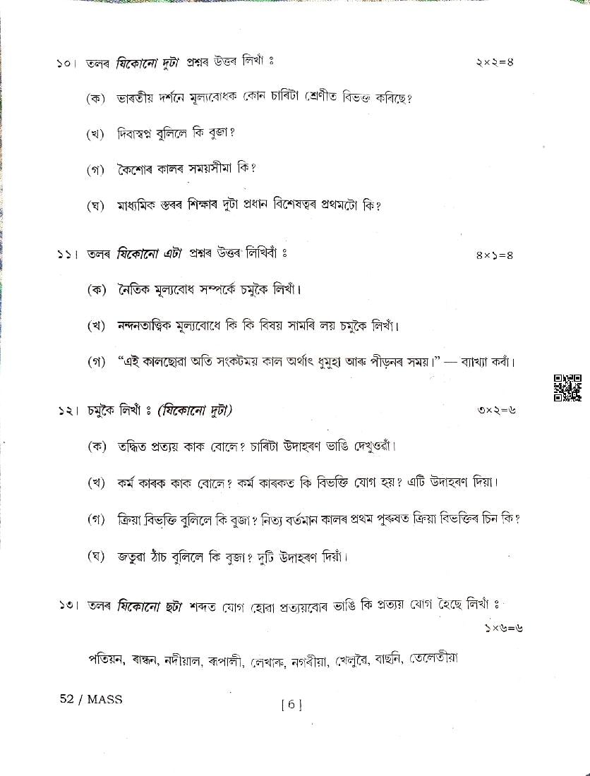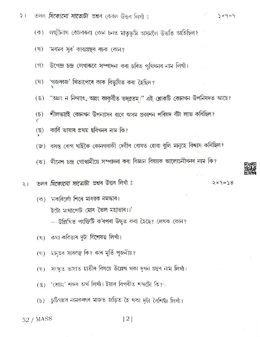 | Subject | Assamese |