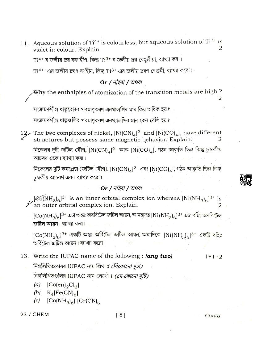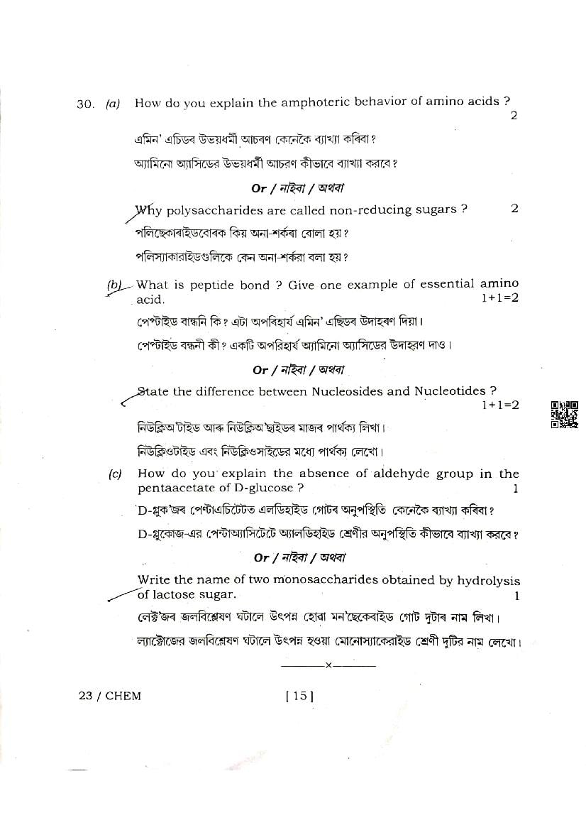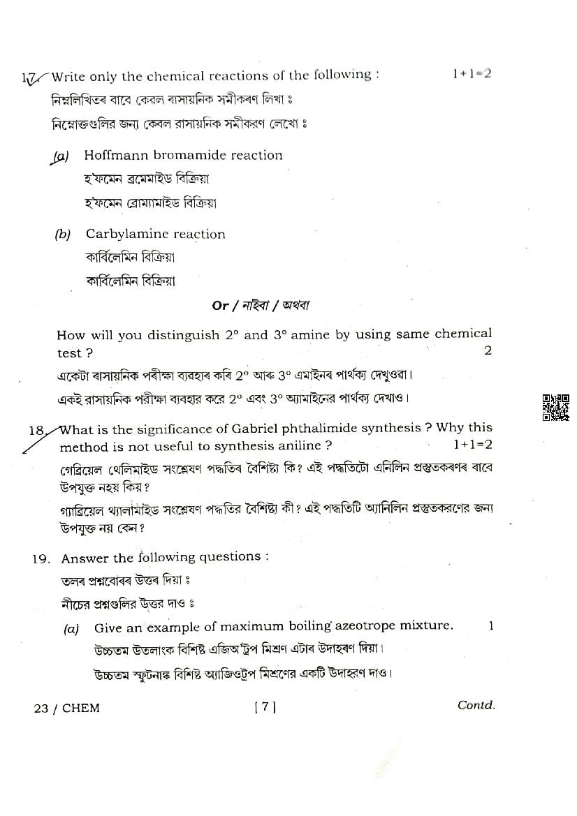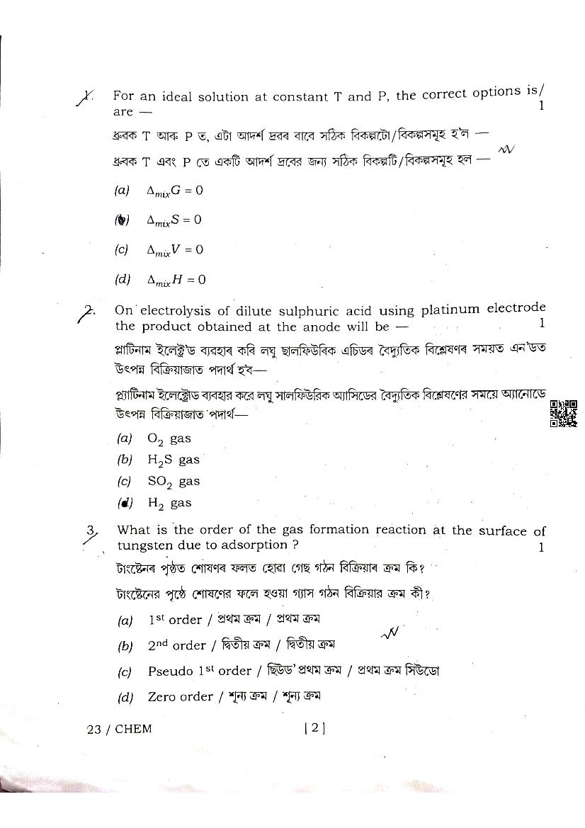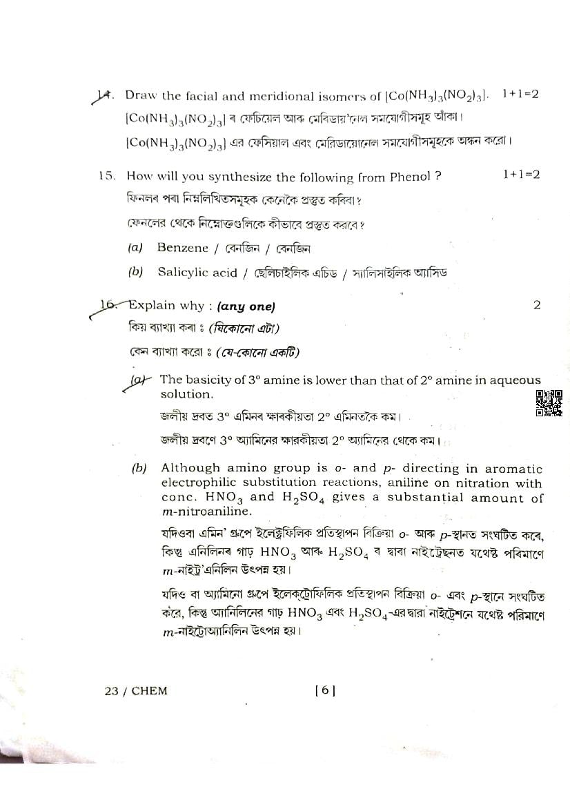 The Assam Board Previous Year Question Paper for HS 2nd Year (Class 12) Chemistry is as follows.