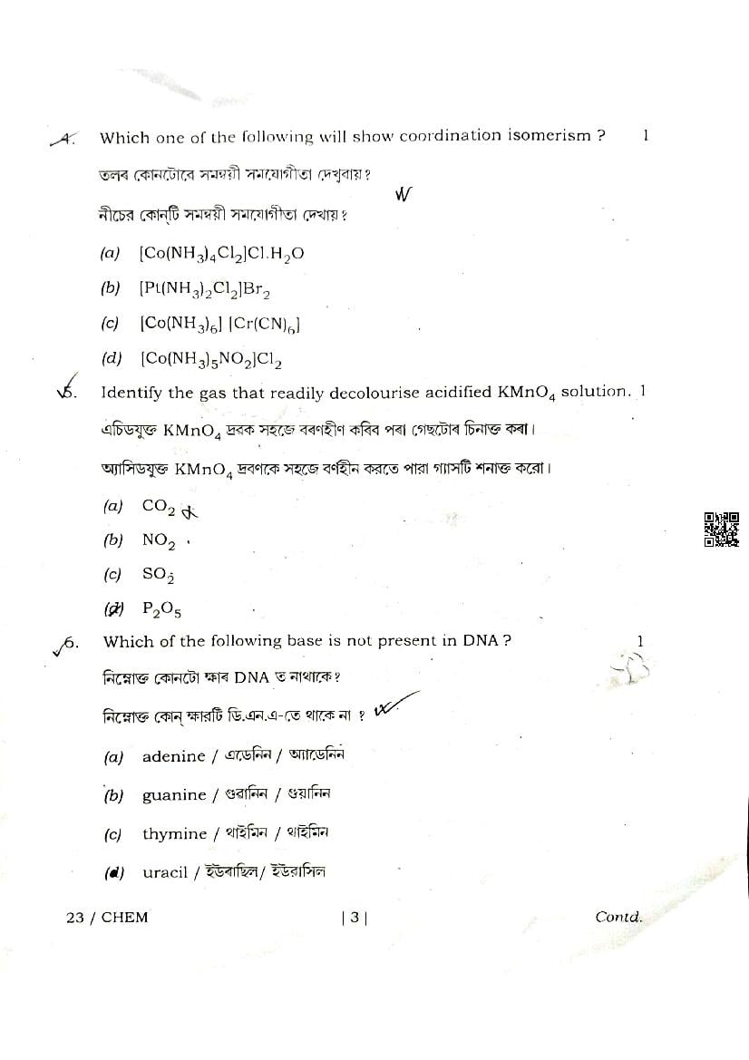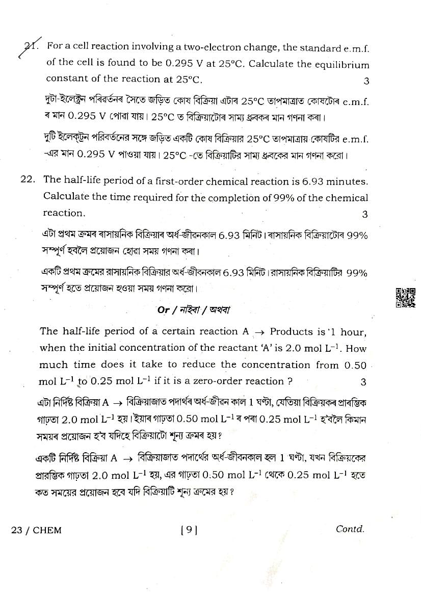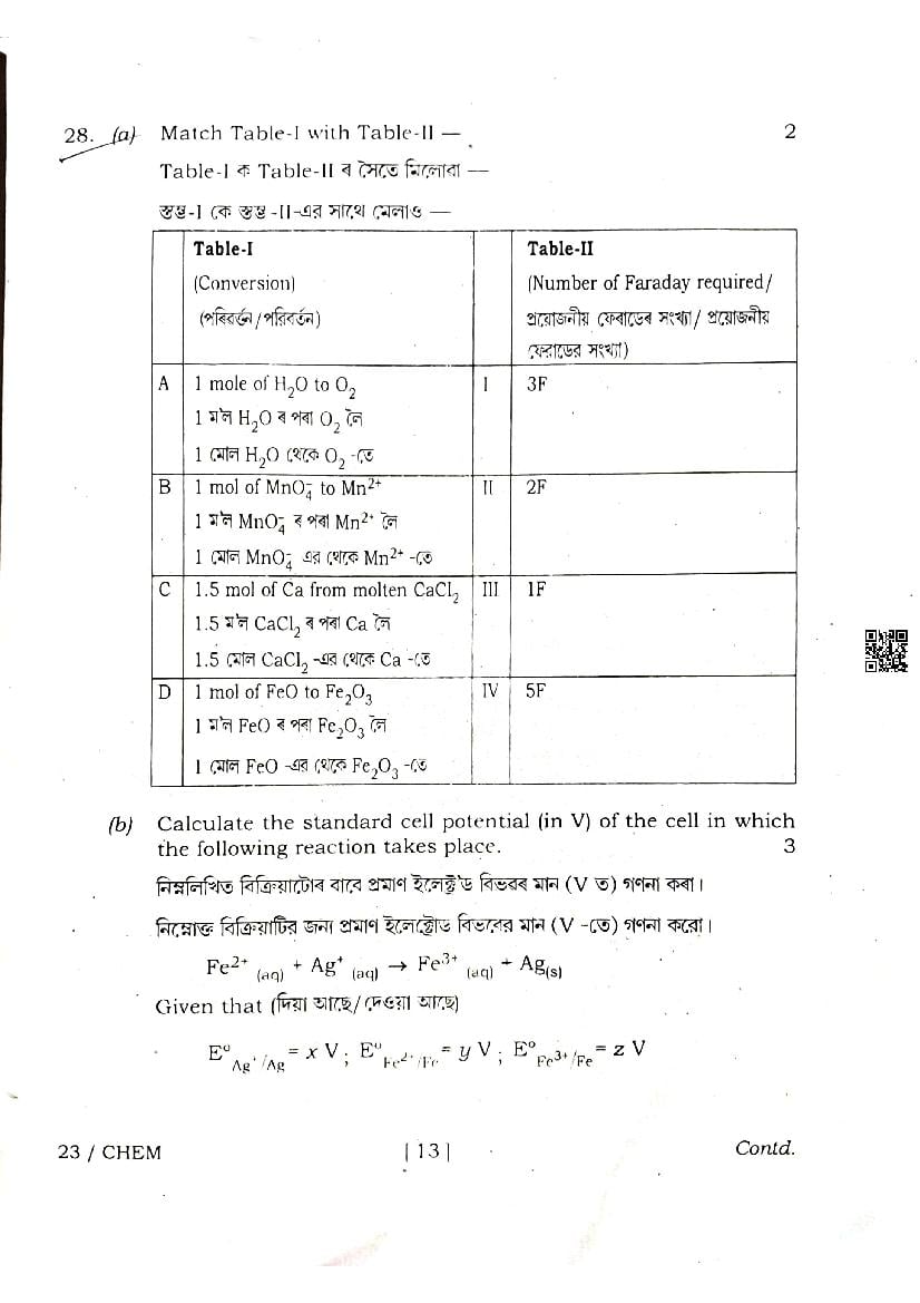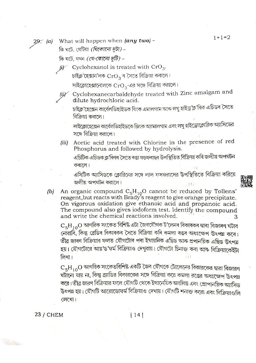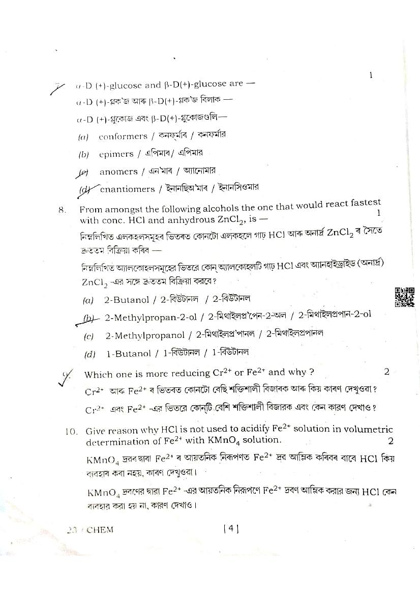 The Assam Board Previous Year Question Paper for HS 2nd Year (Class 12) Chemistry is as follows.