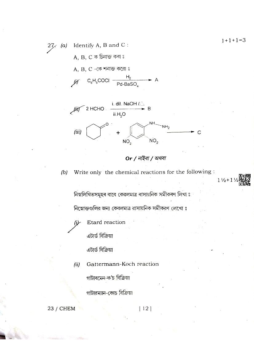 | Educational Resource Here | Assam Board Previous Year Question Paper of Class 12 Chemistry |