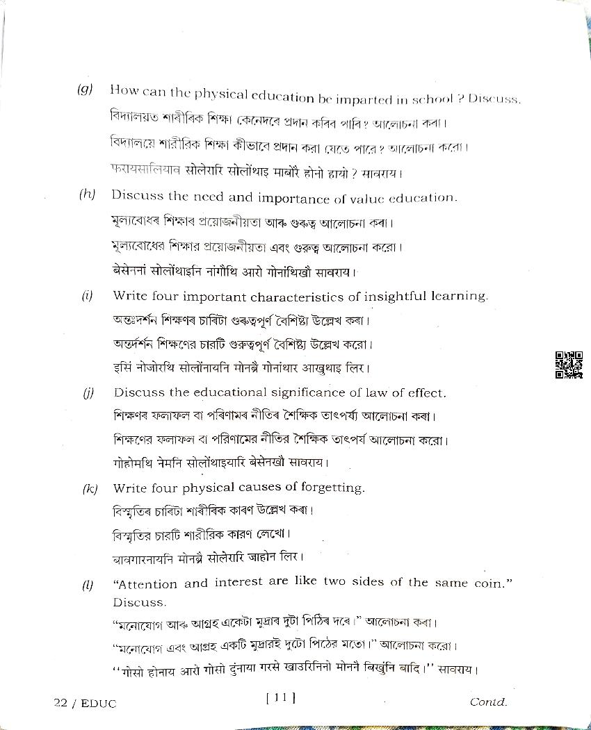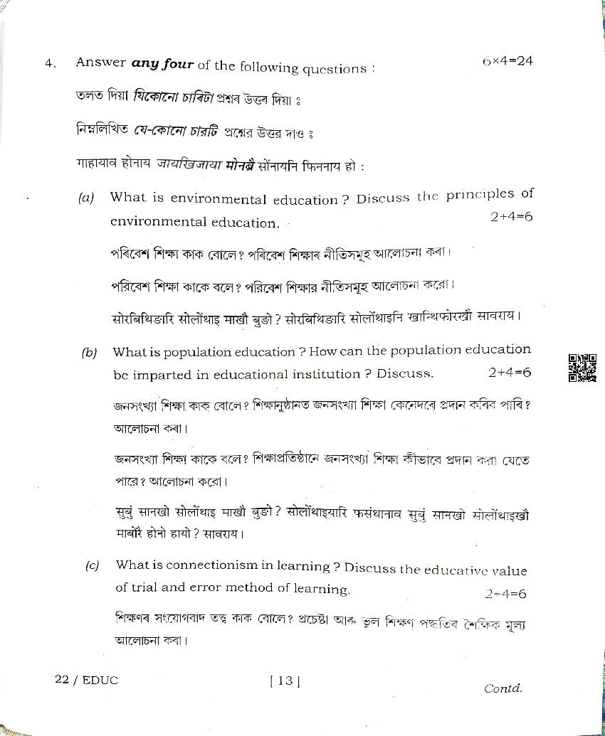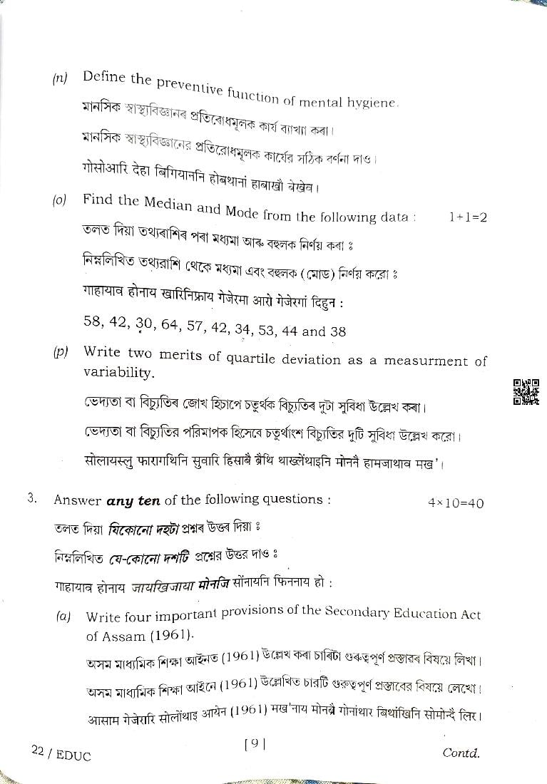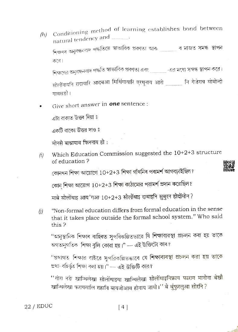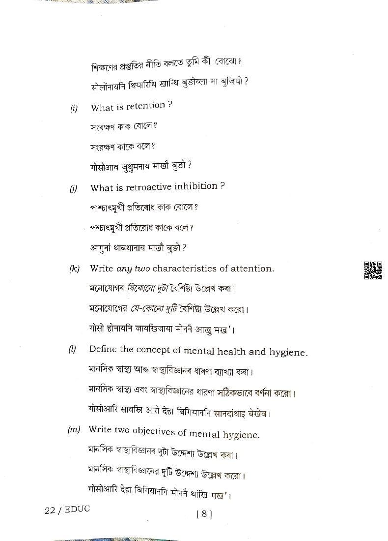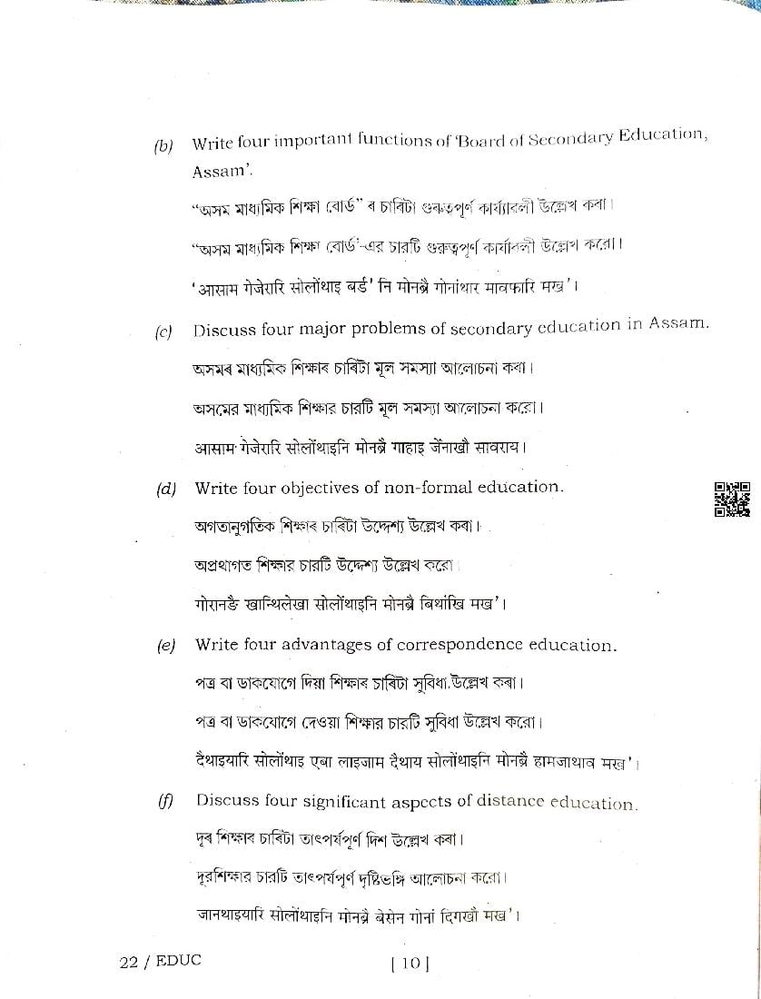 | Educational Resource Here | Assam Board Previous Year Question Paper of Class 12 Education |