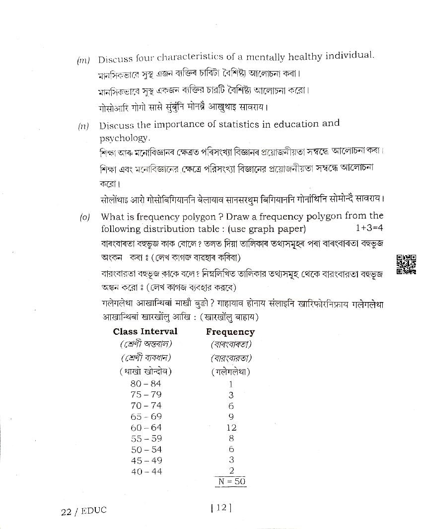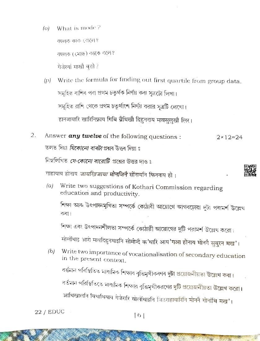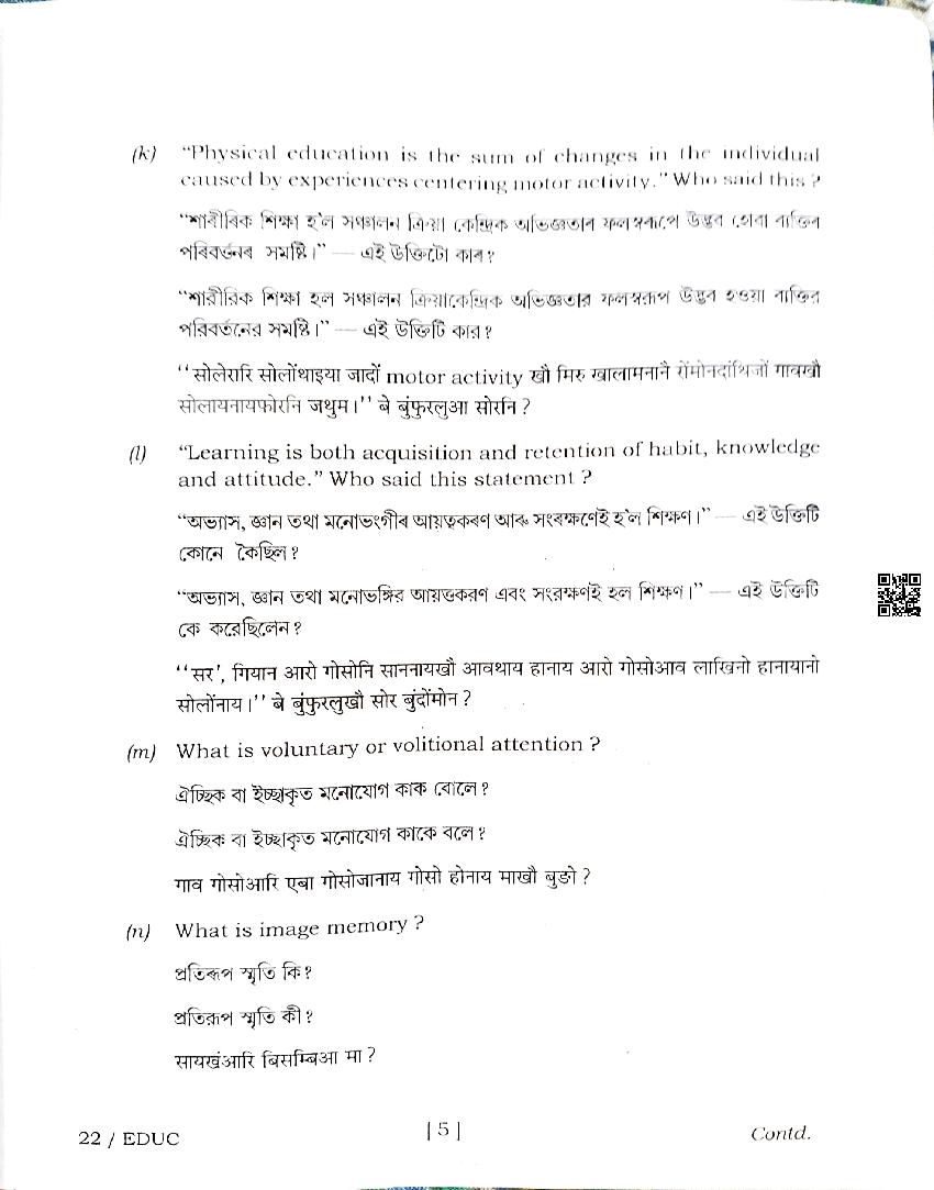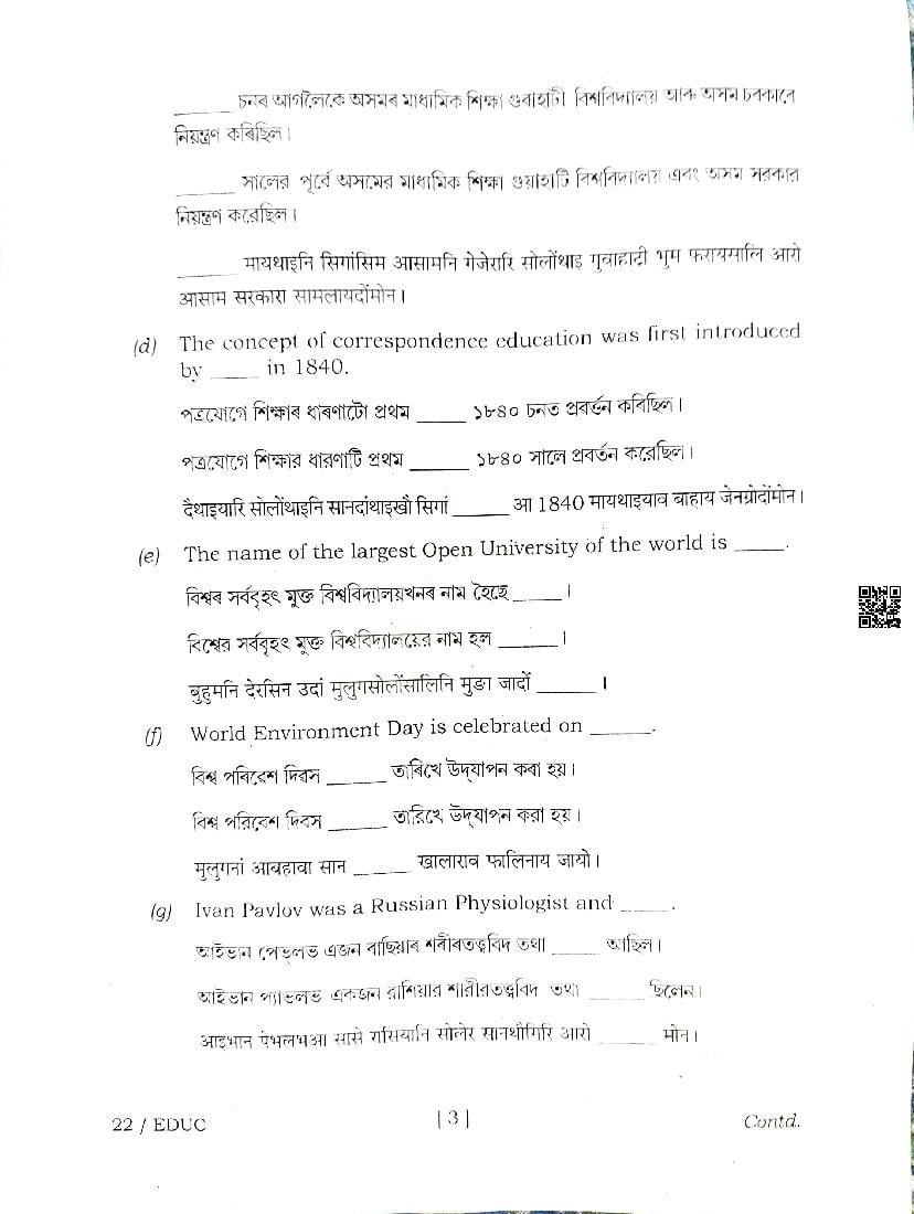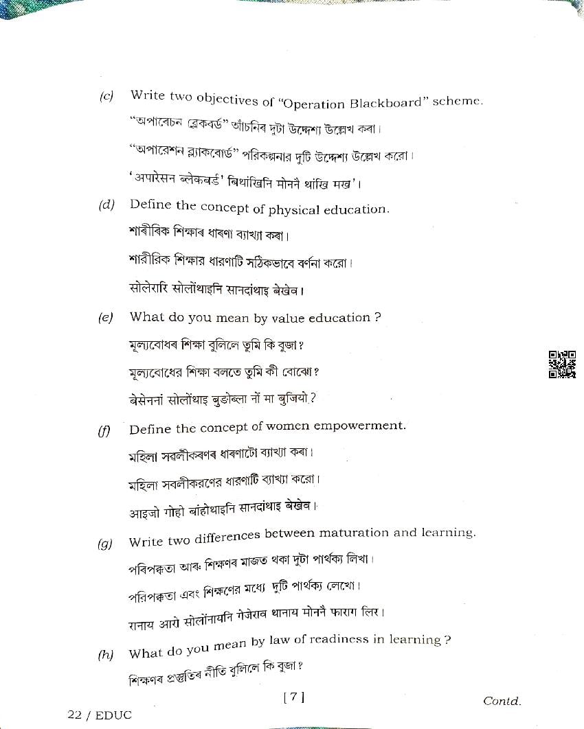 | Educational Resource Here | Assam Board Previous Year Question Paper of Class 12 Education |