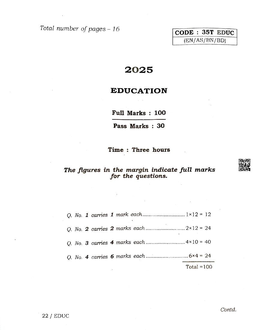 AHSEC Class 12 Education Question Paper 2025