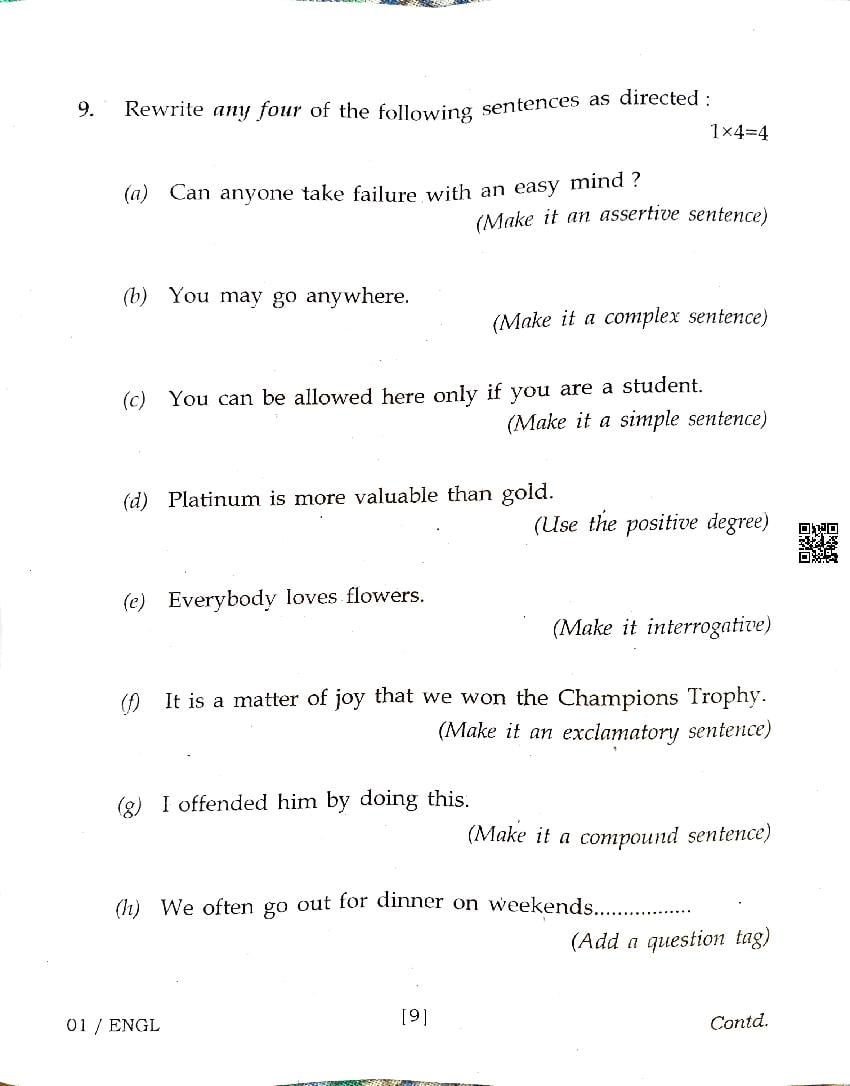 AHSEC Class 12 English Question Paper – An Overview