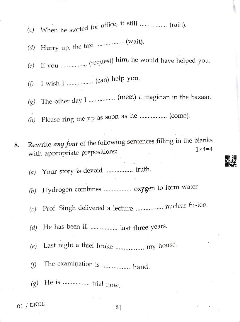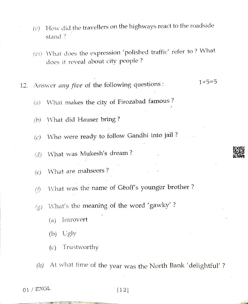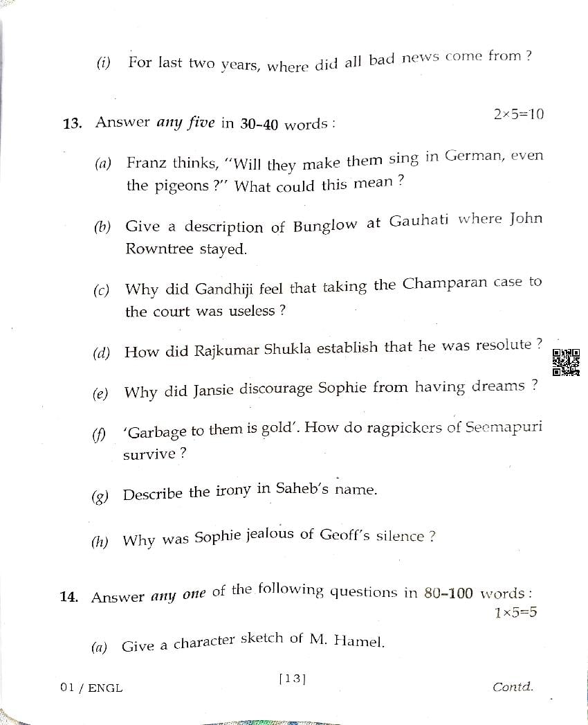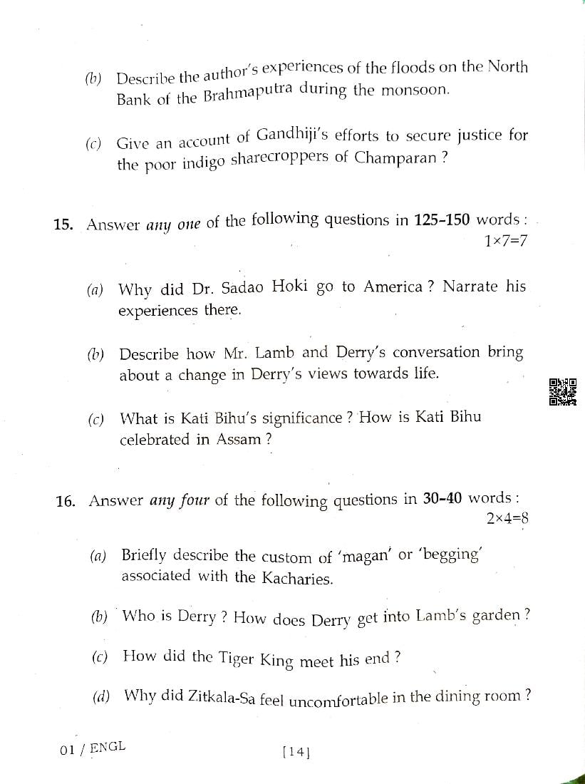 The Assam Board Previous Year Question Paper for HS 2nd Year (Class 12) English is as follows.