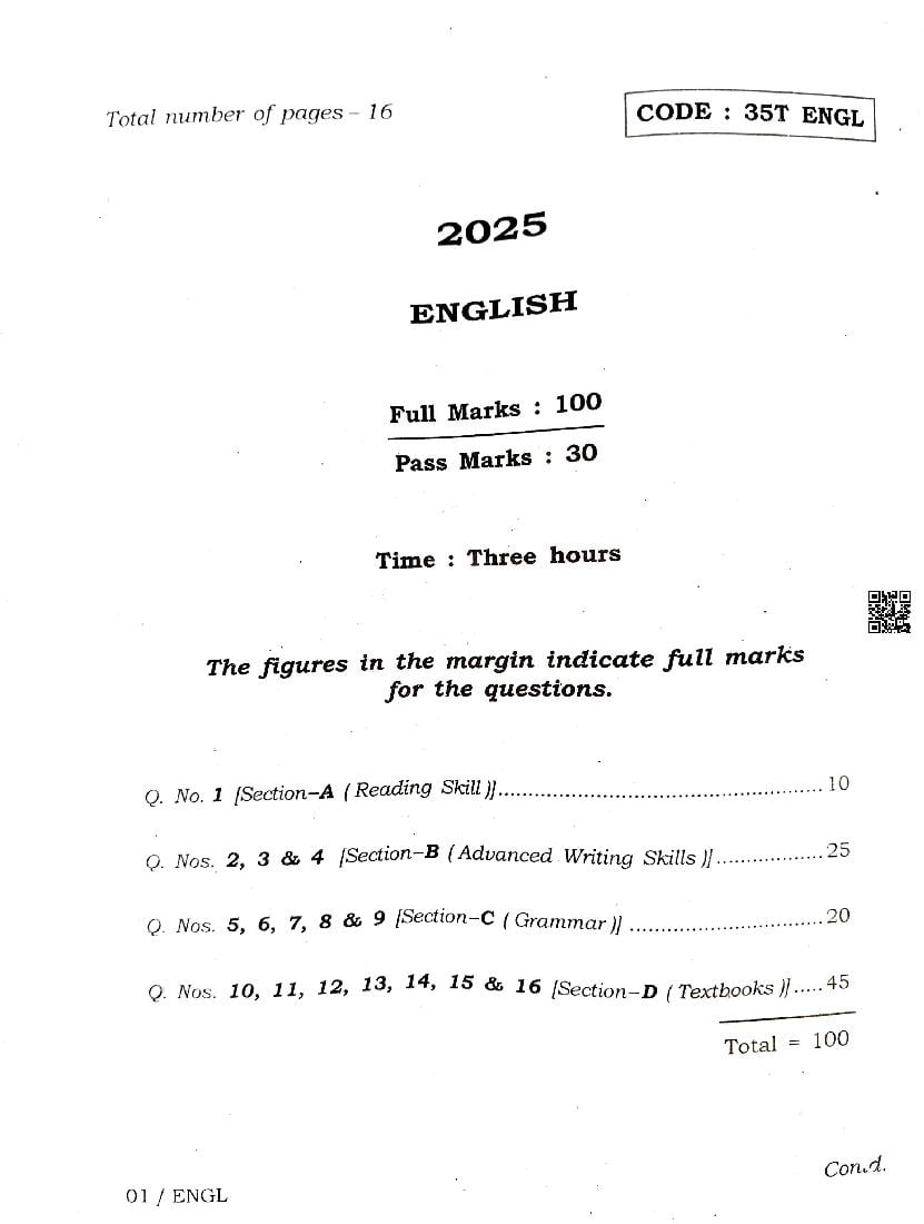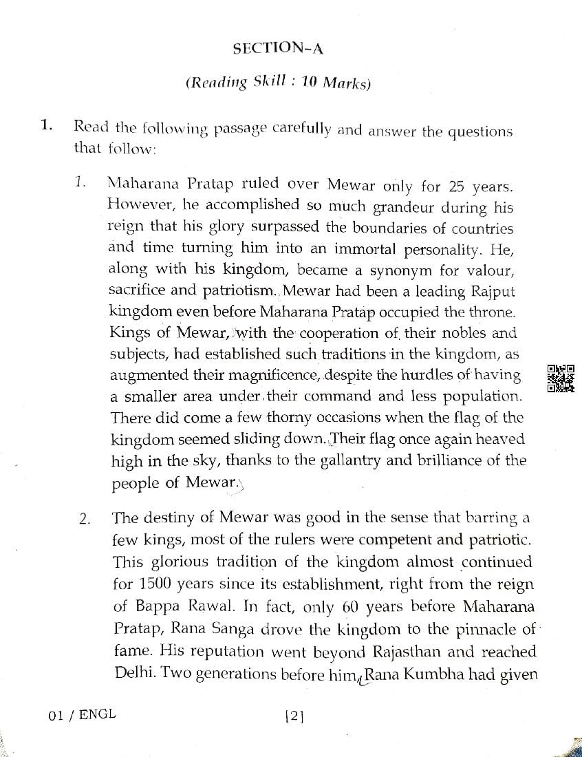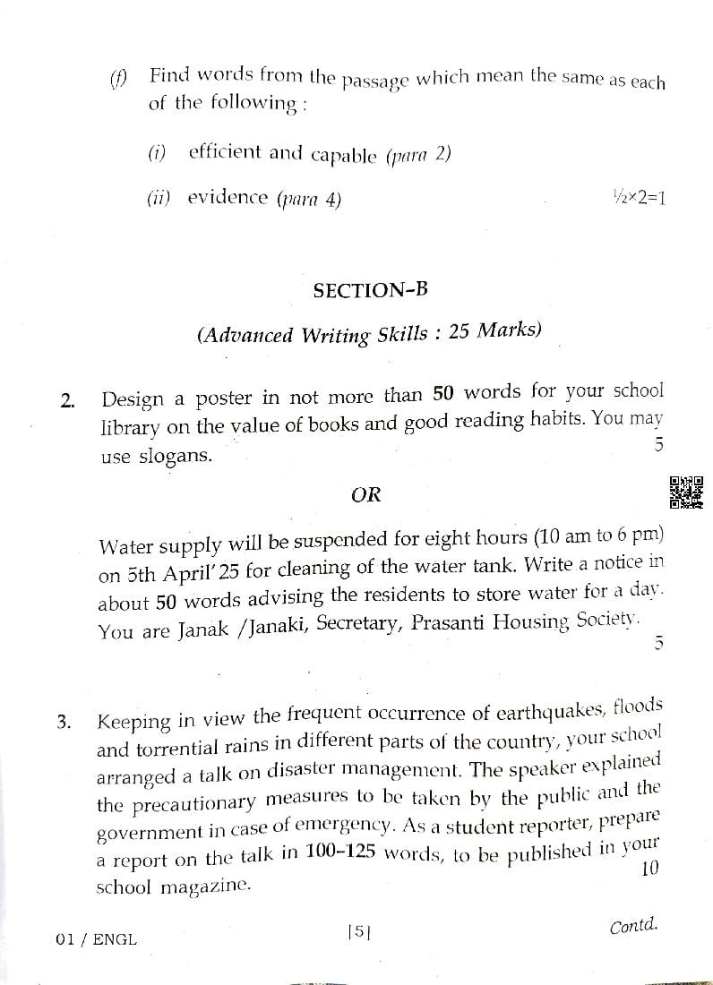 Class 12 Question Paper 2025 English View Download