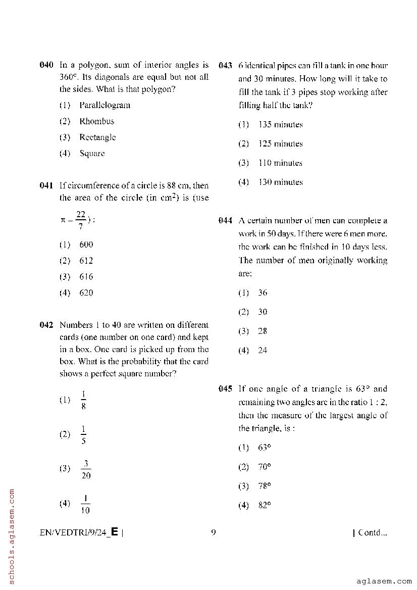 Sainik School Question Paper 2024 for Class 9 is now available for download. You can access the AISSEE 2024 Question Paper for Class 9 on Aglasem. This Sainik School Question Paper for Class 9 includes real questions from the All India Sainik School Entrance Exam conducted in 2024. It will aid in your preparation for the forthcoming AISSEE exam for class 9 admissions.