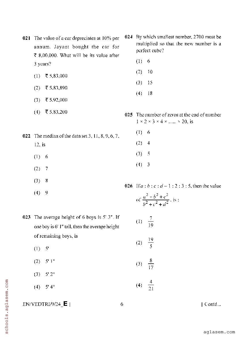 The portable document format for this question paper that came in Sainik School Admission exam is as follows.