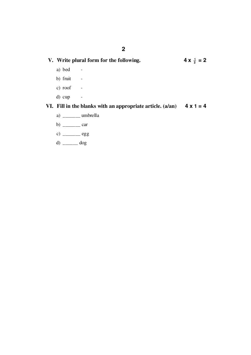 The AP Board Question Paper of Class 2nd for FA2 Exams of English subject is as follows.