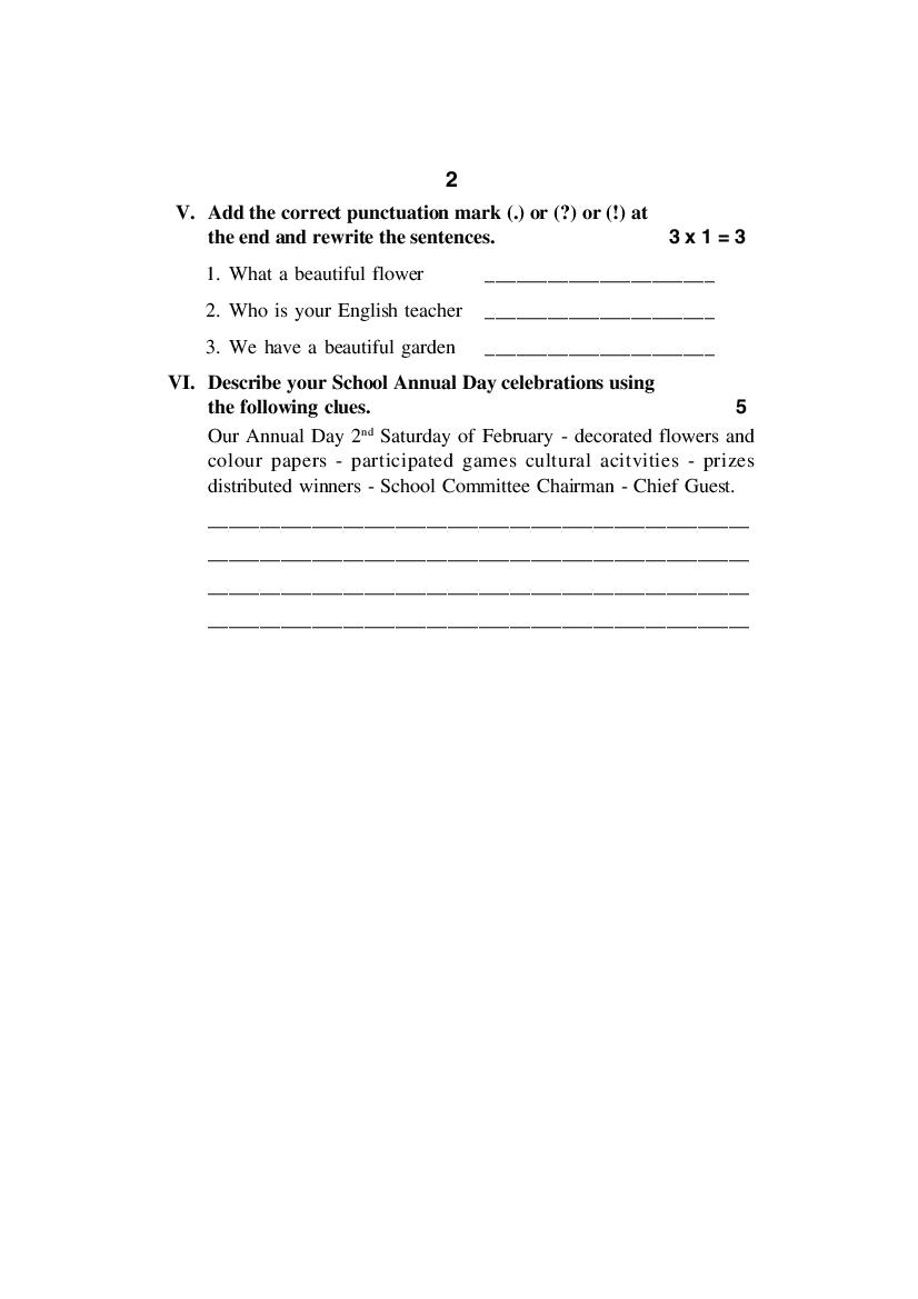 The AP Board Question Paper of Class 4th for FA2 Exams of English subject is as follows.
