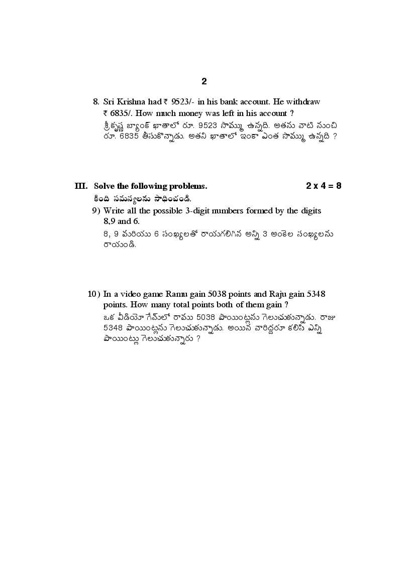 | Study Material Here | AP Class 4 FA2 Question Paper of Maths |
