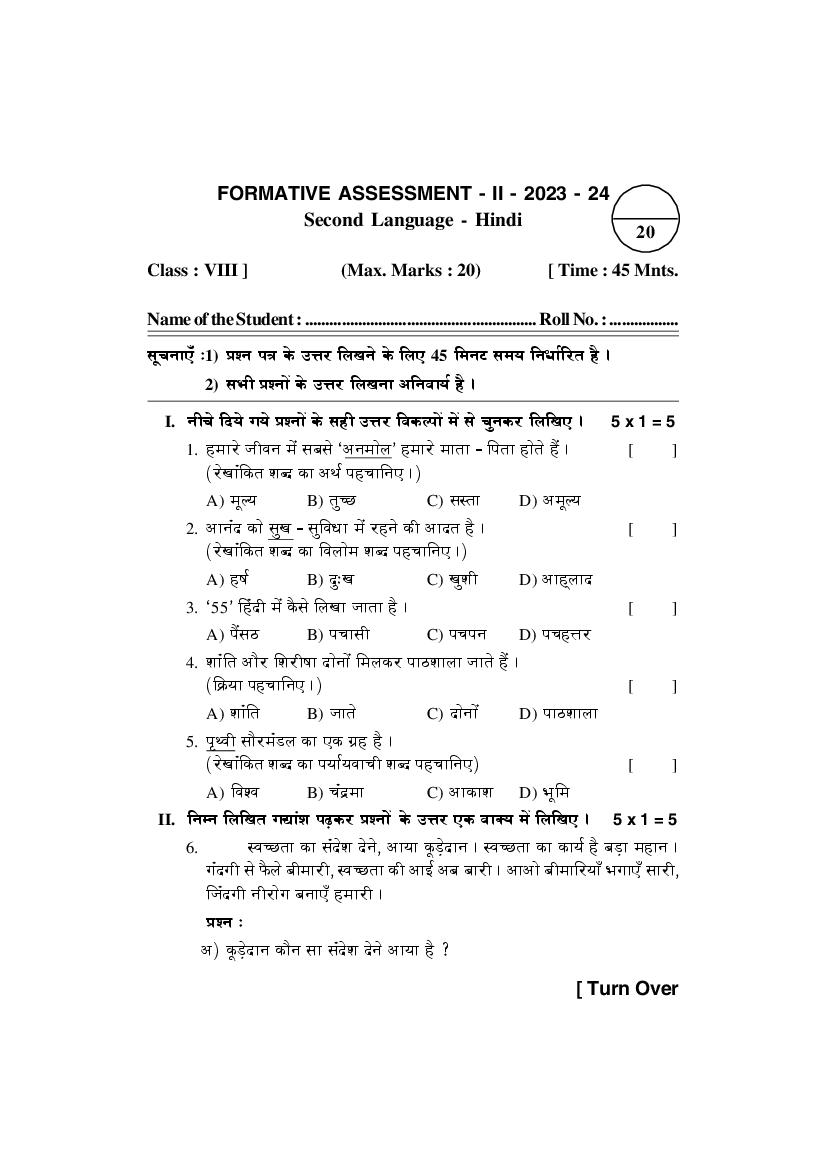 AP Class 8 FA2 Question Paper 2023 Hindi View Download
