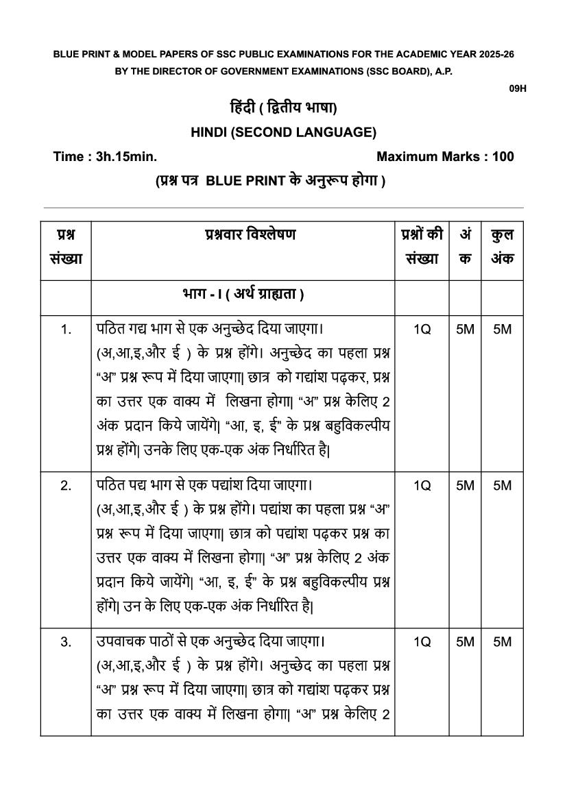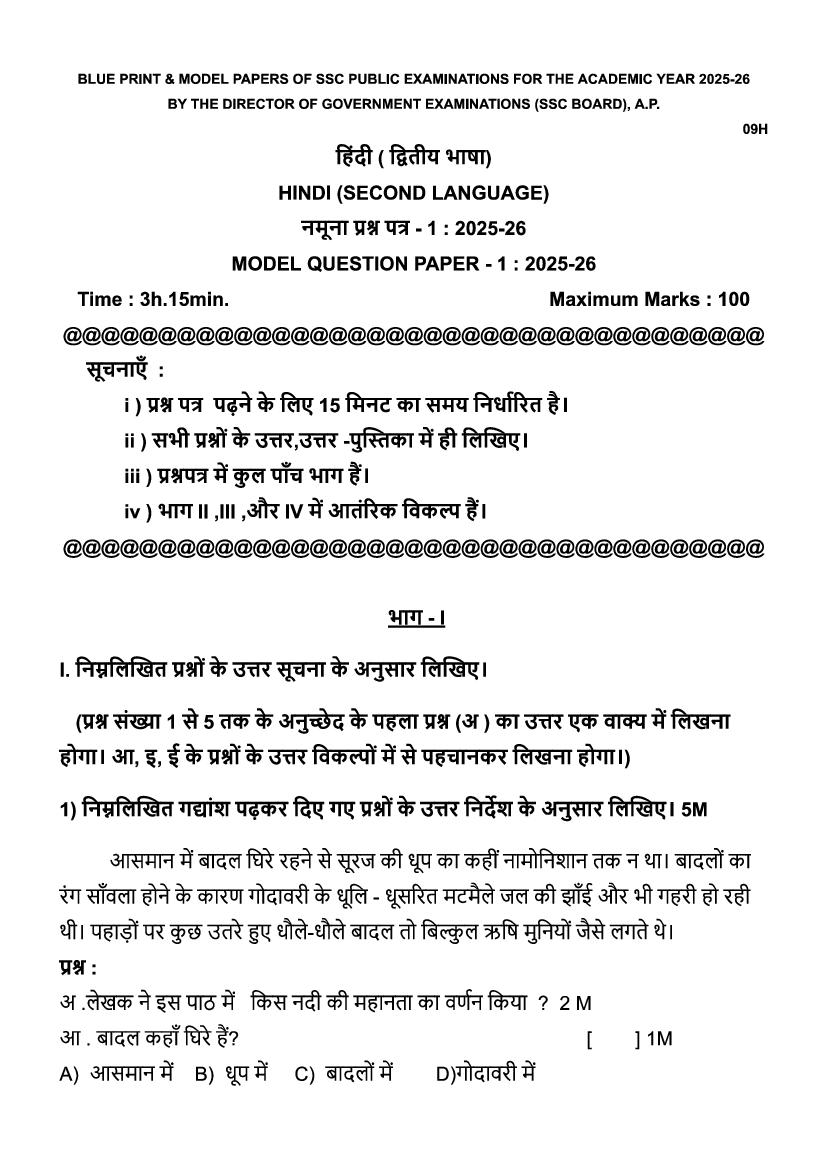 AP Class 10 Model Paper 2026 Hindi Second Language View Download