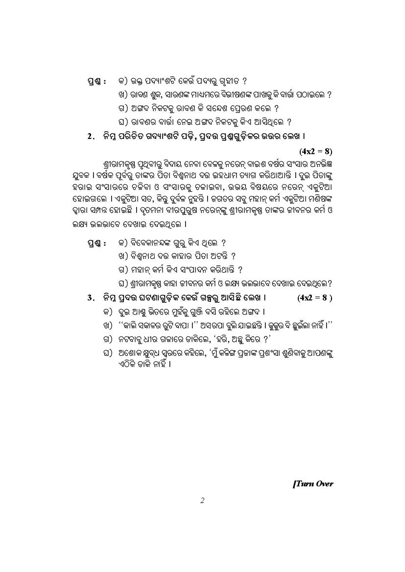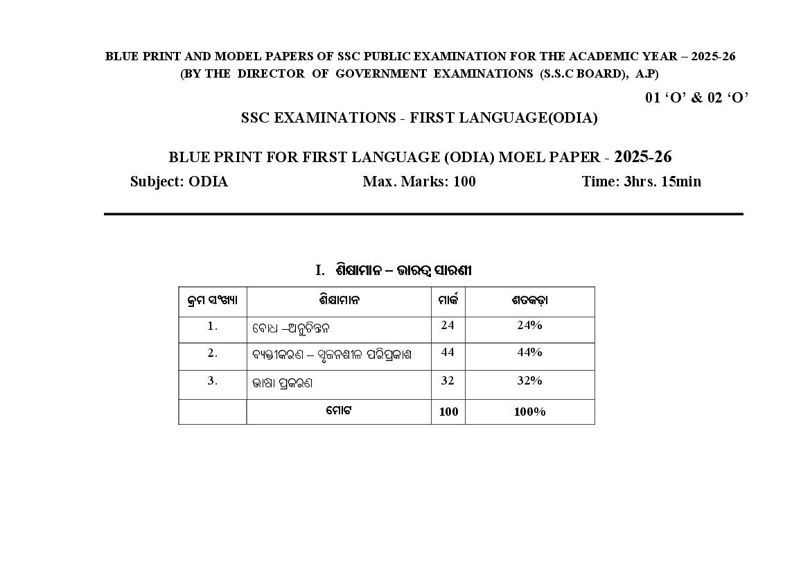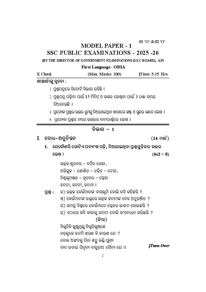 The AP Board Model Question Paper for class 10th (SSC) Odia is as follows.