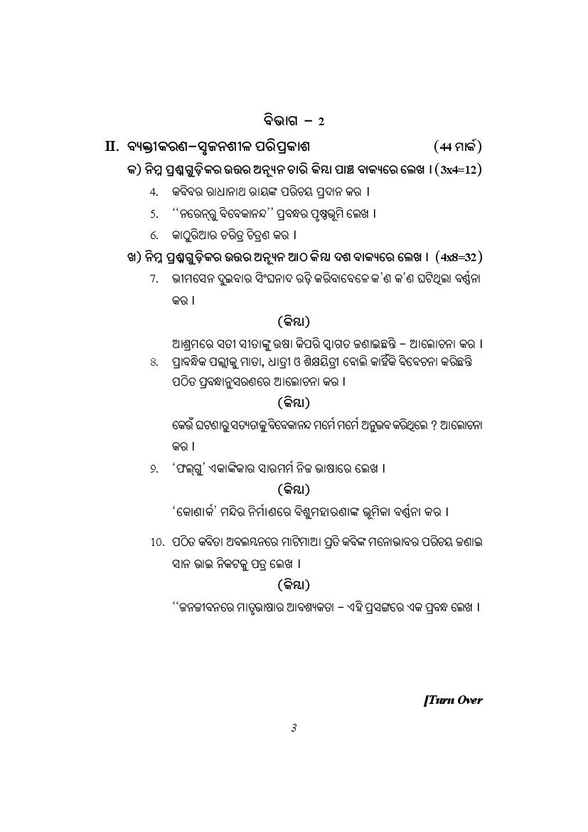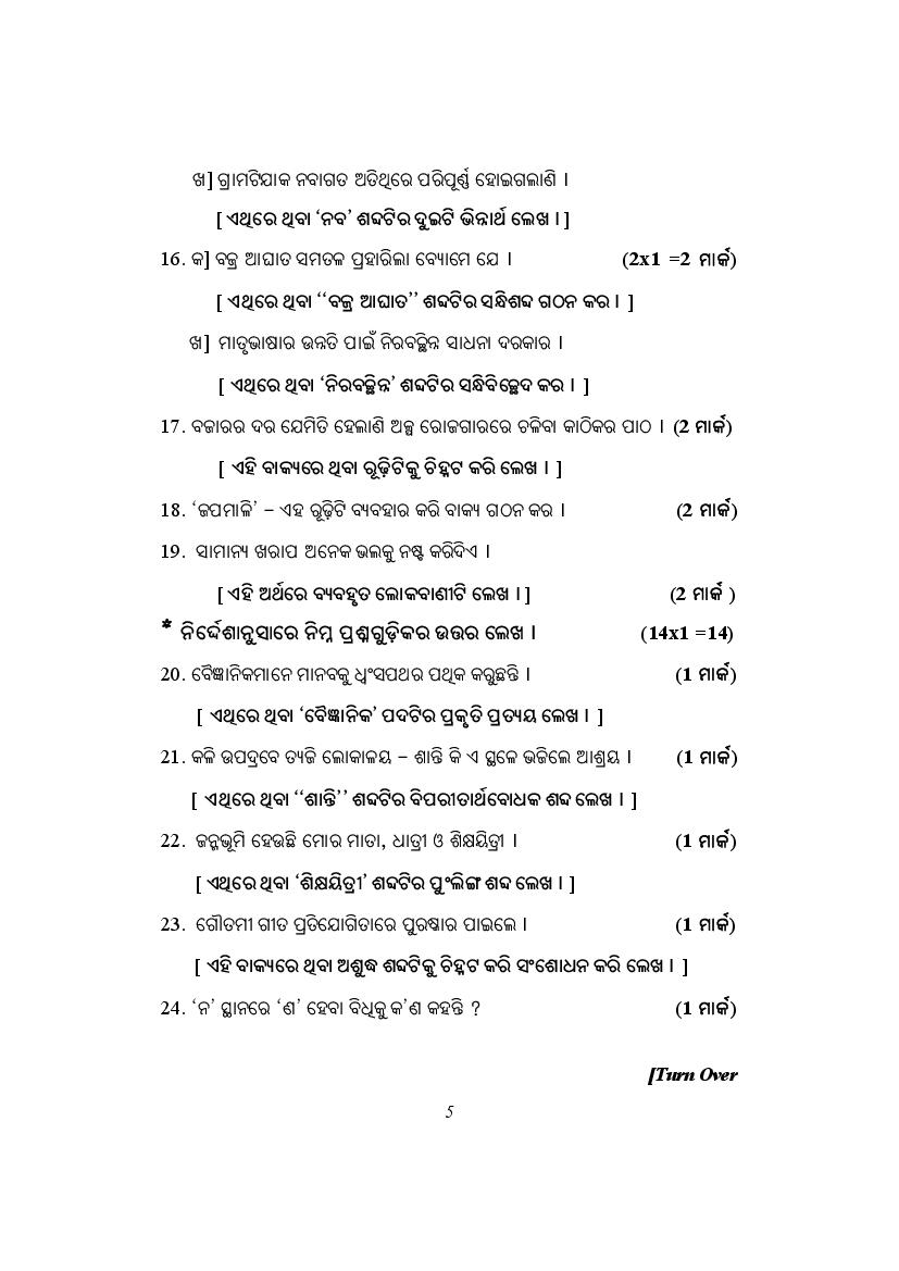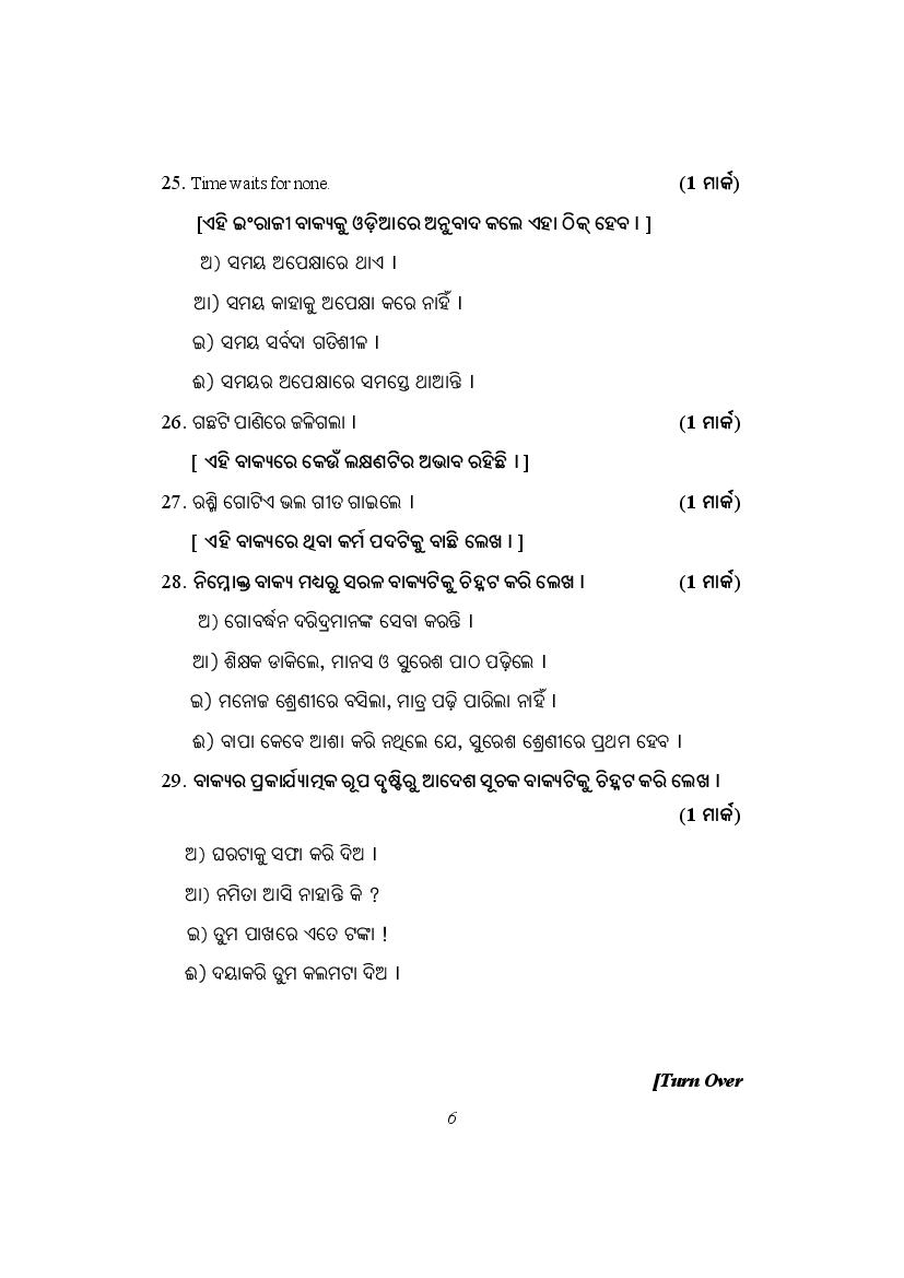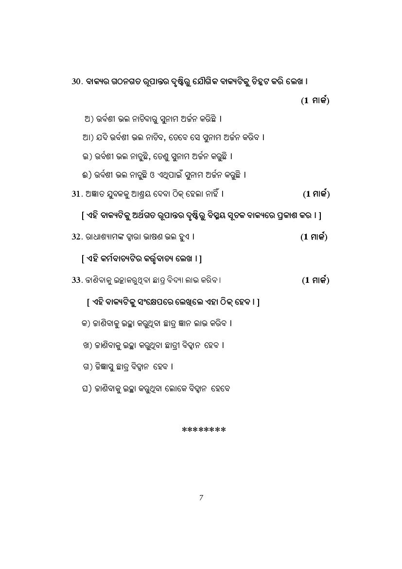 The complete Odia sample paper is as follows.