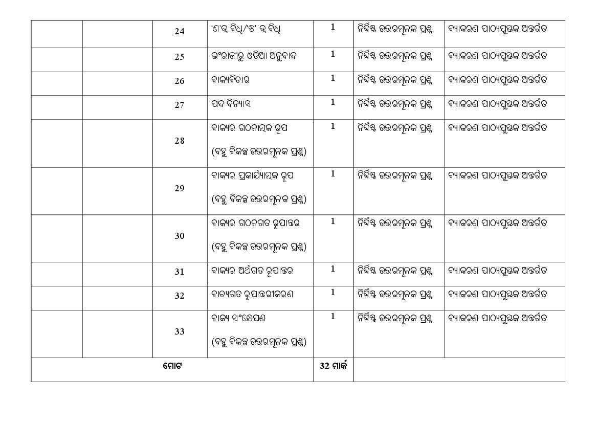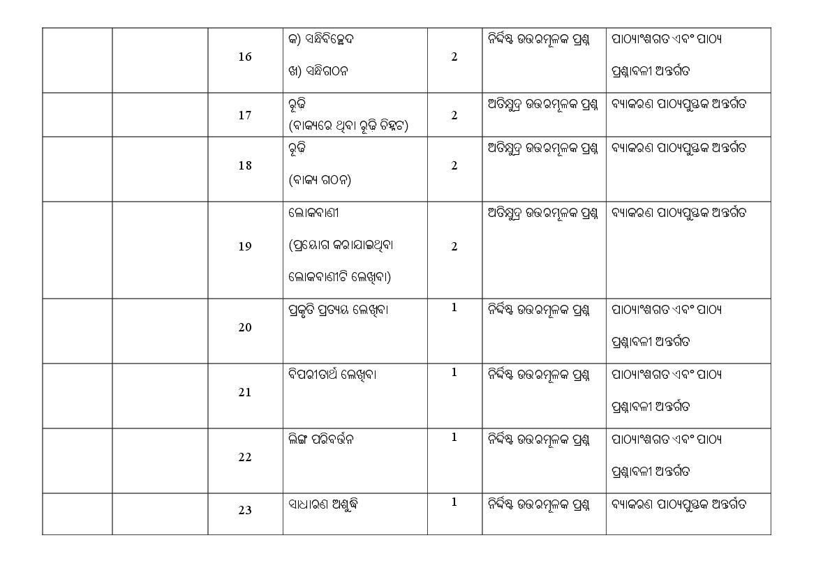| Subject | Odia |