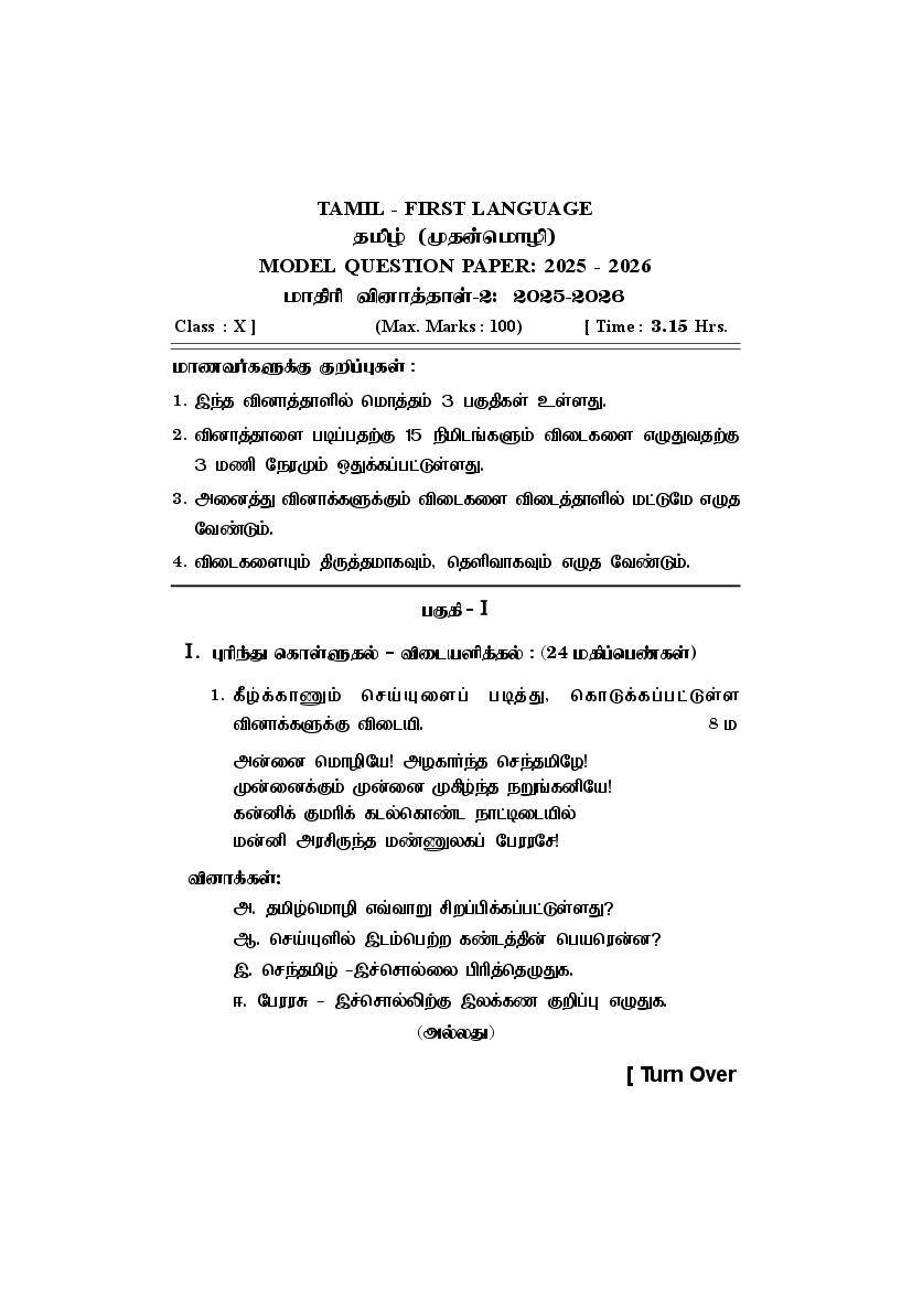 The complete Tamil sample paper is as follows.