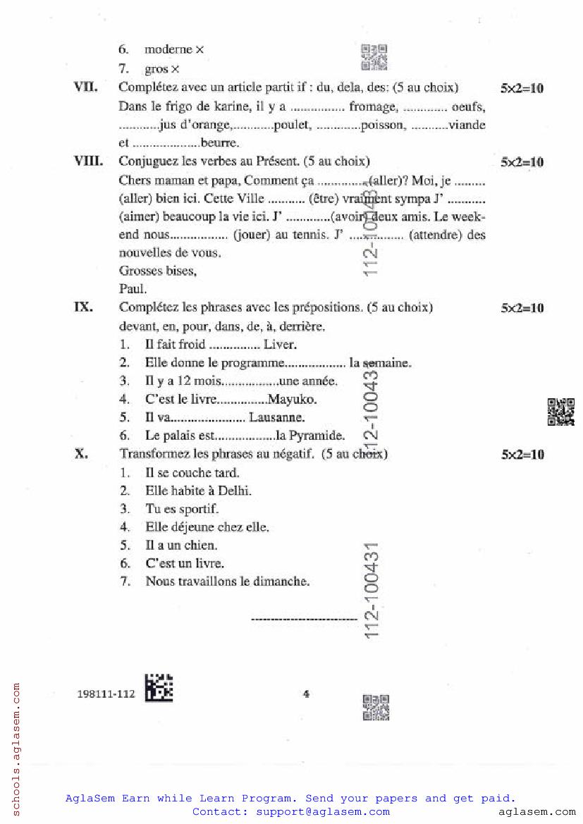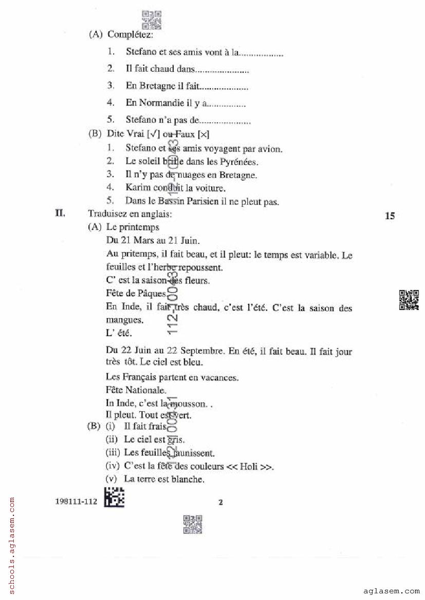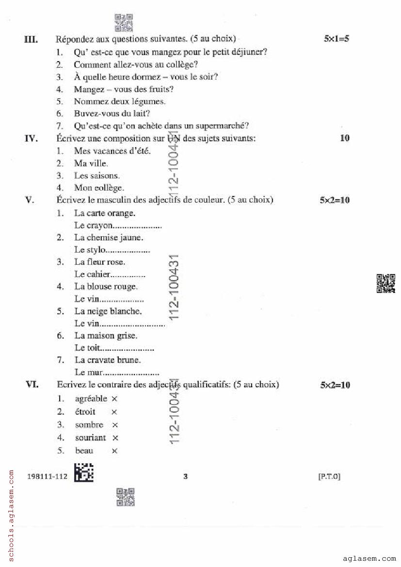 - However the 11th class previous year question papers contain actual questions asked in French exam.