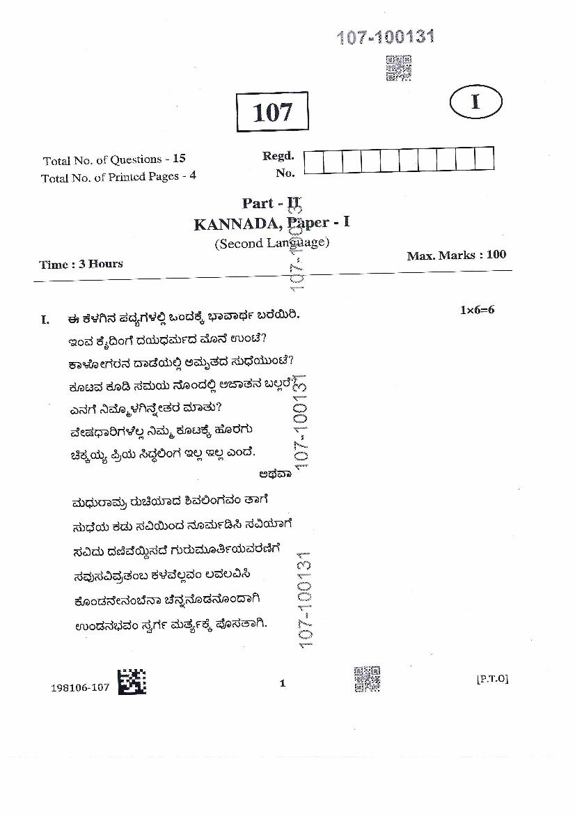 AP Inter 1st Year Kannada Question Paper