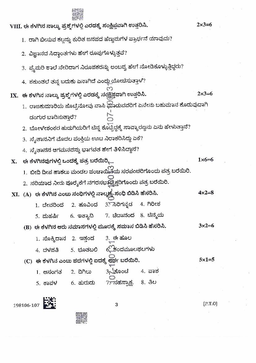 - However the 11th class previous year question papers contain actual questions asked in Kannada exam.