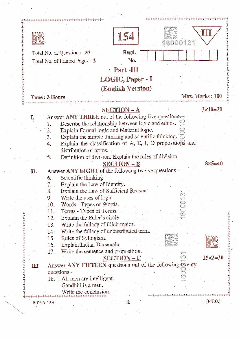 AP Inter 1st Year Logic Question Paper PDF