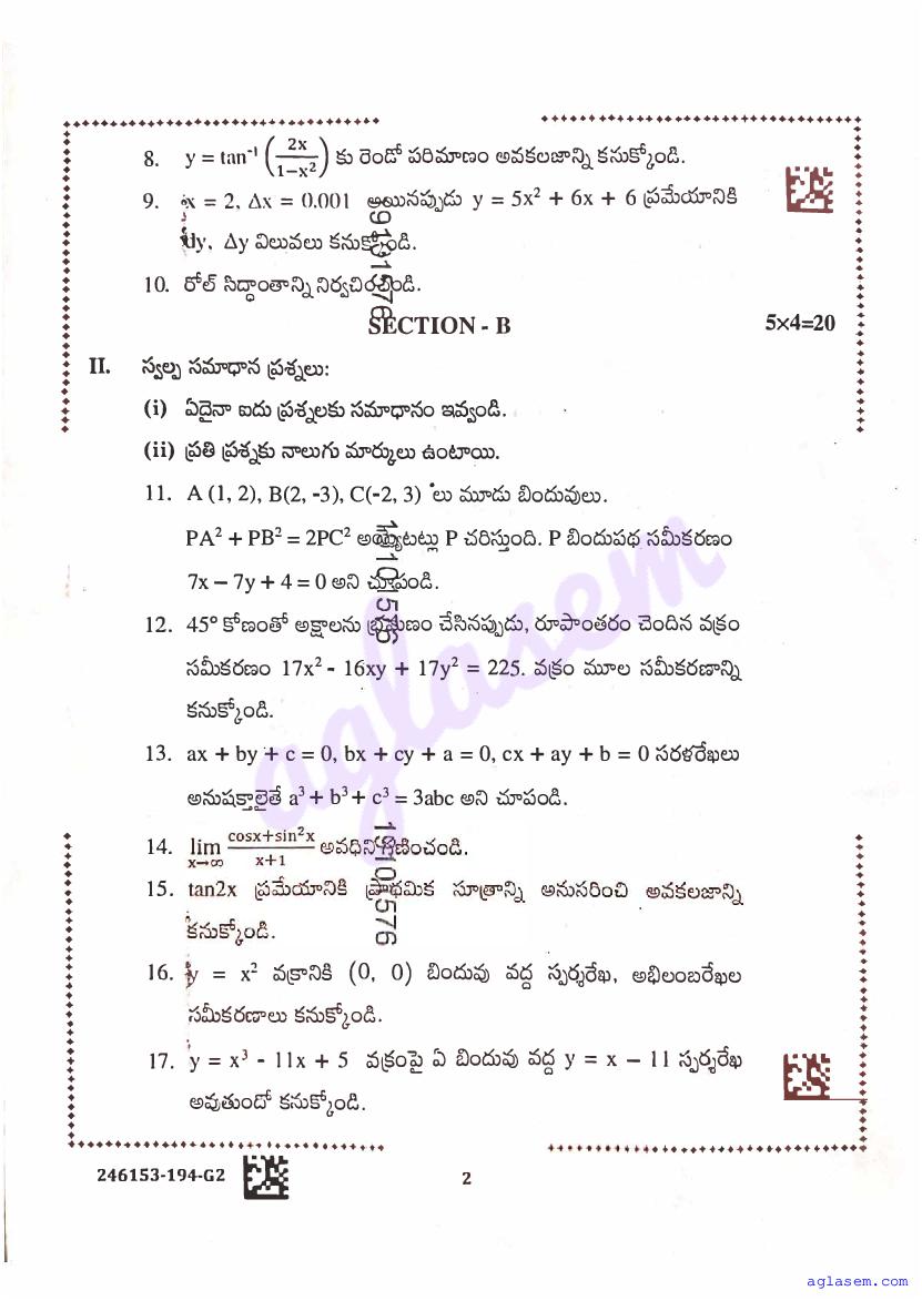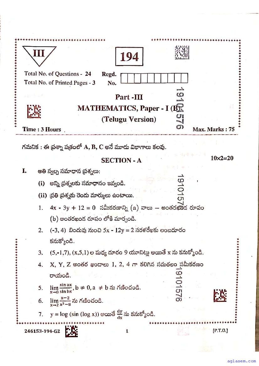 - Nevertheless you should solve both for a high score in Maths 1B and overall AP Inter 1st Year Results.
