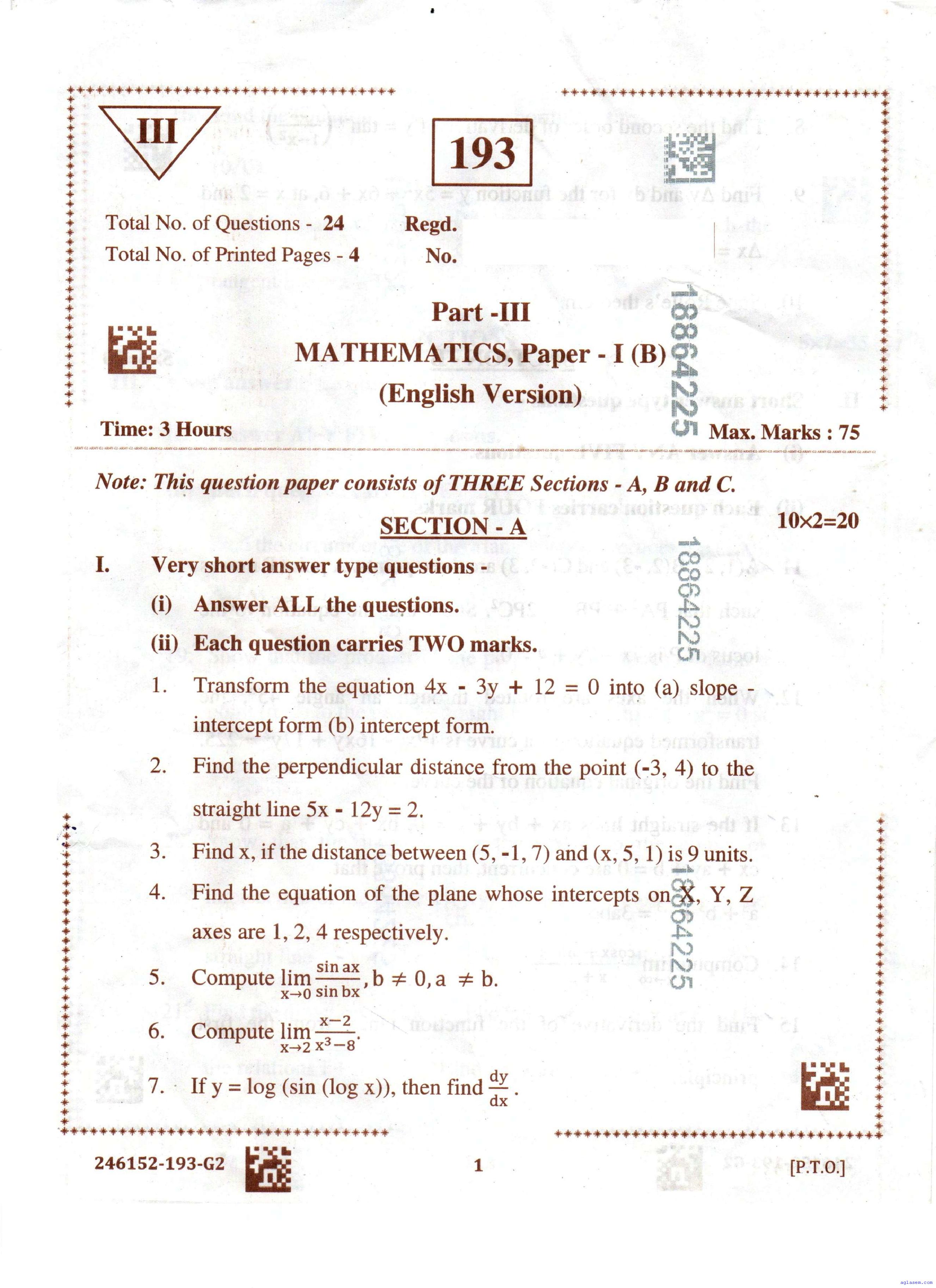 AP Inter 1st Year Maths 1B Question Paper